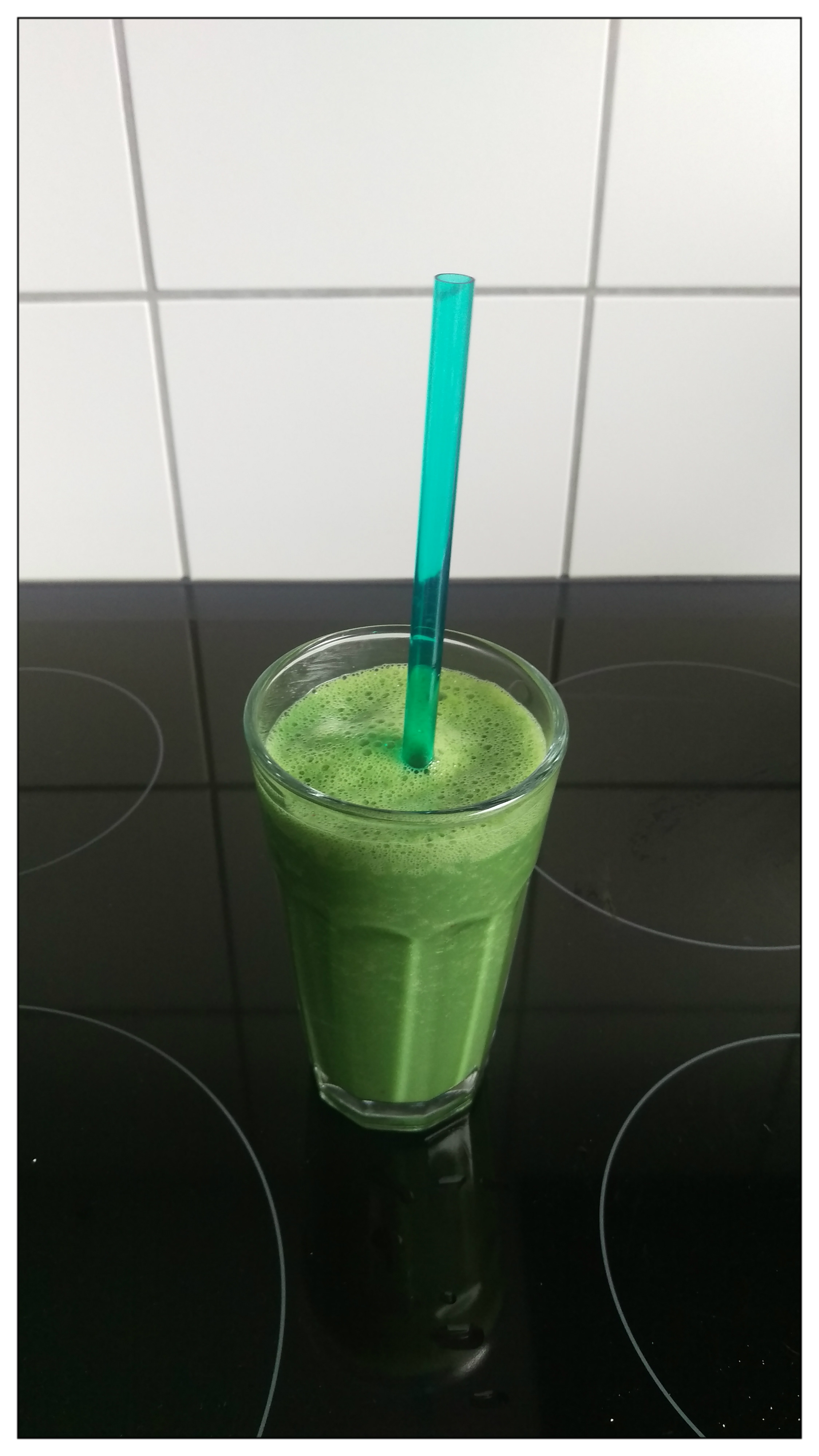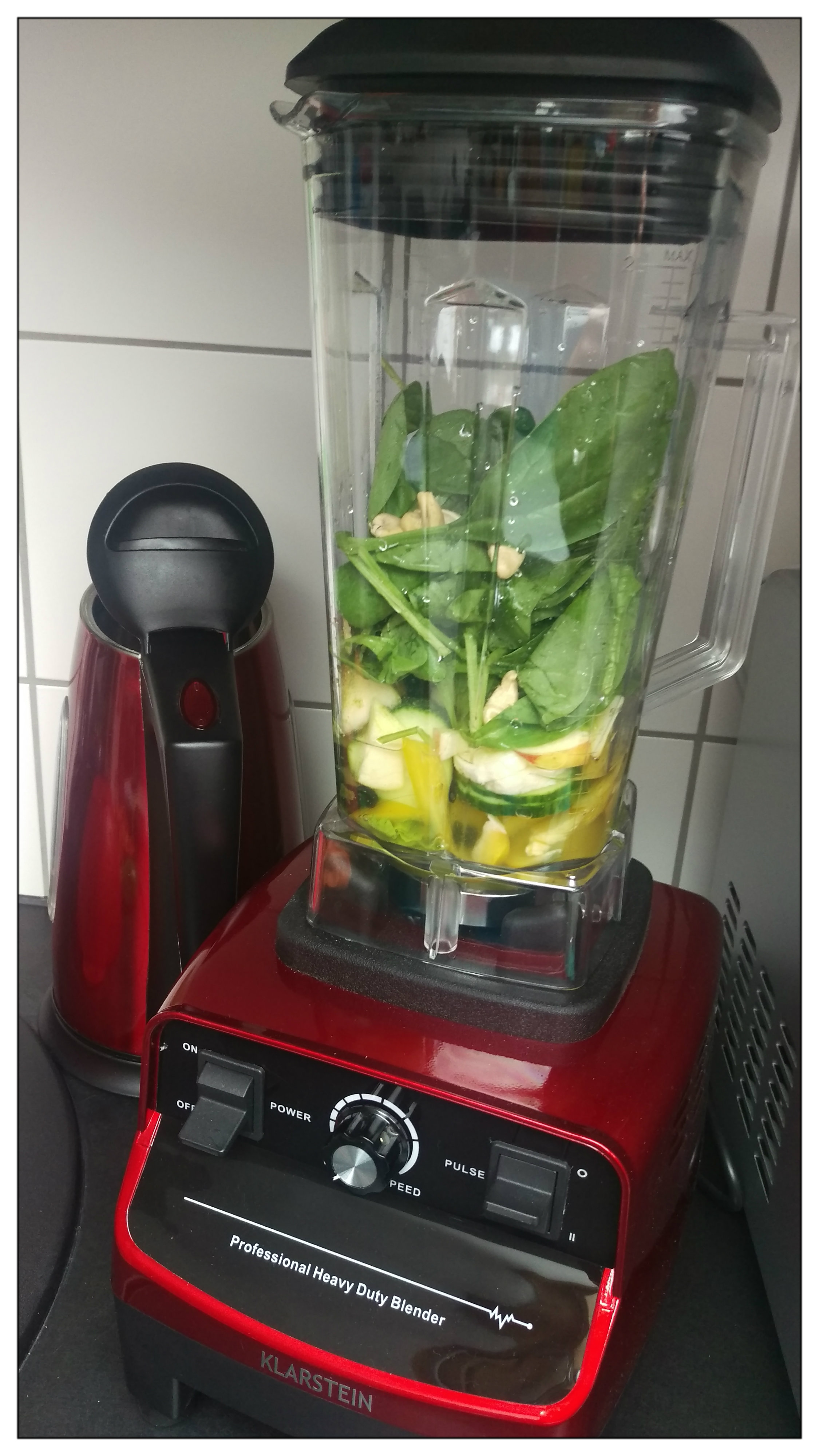 250 ml Wasser in den Mixer geben und zu einem Smoothie verarbeiten