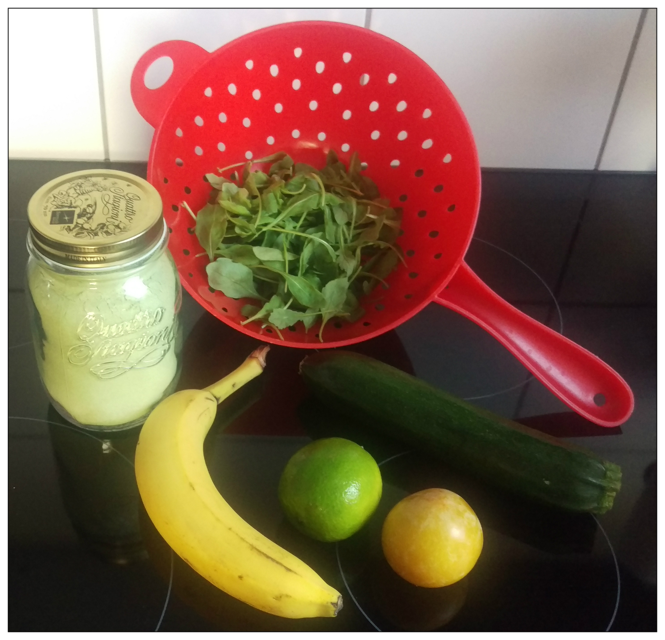 4 Eiswürfeln in den Mixer geben und zu einem Smoothie verarbeiten