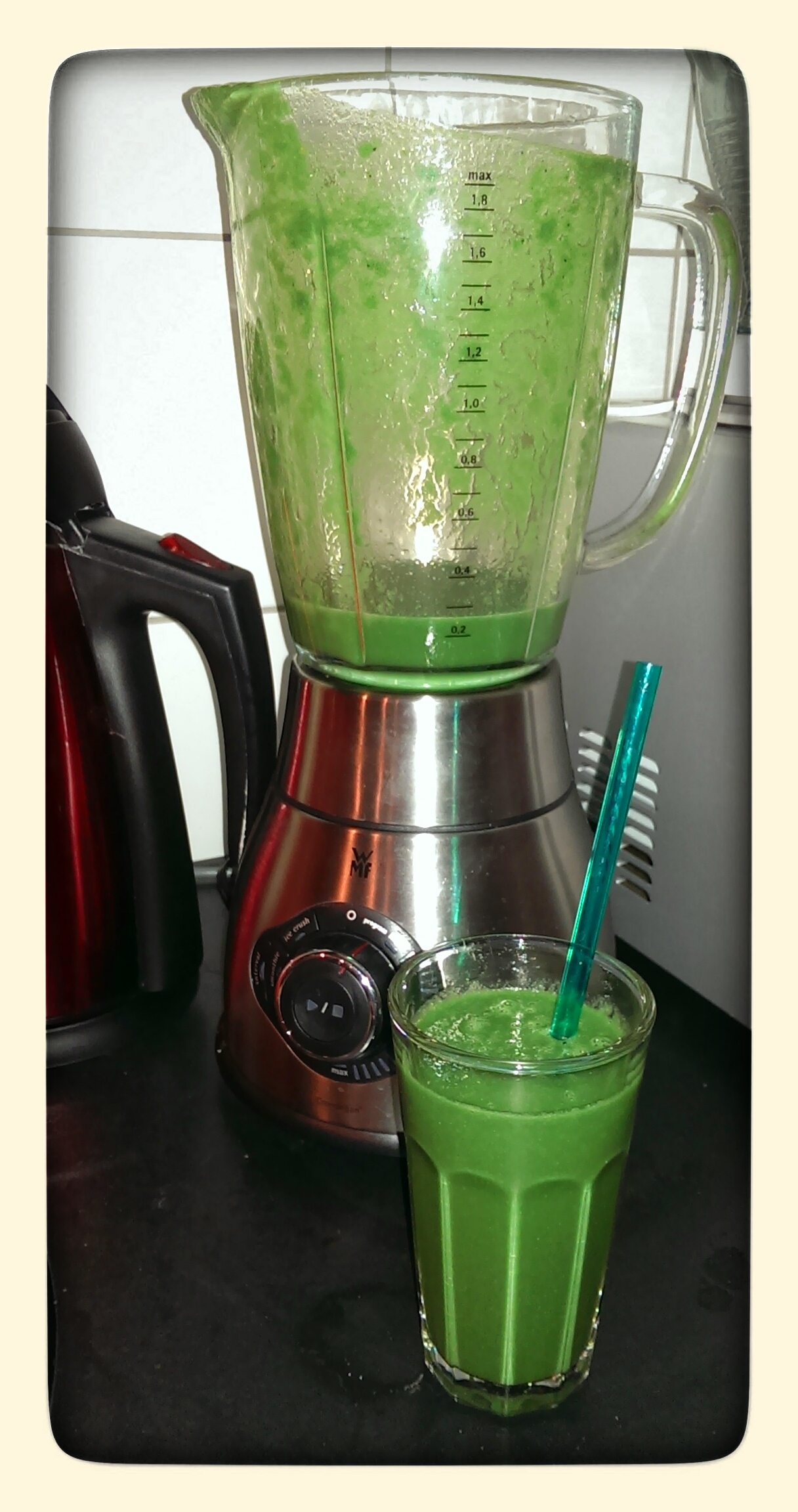 4 Eiswürfeln in den Mixer geben und zu einem Smoothie verarbeiten