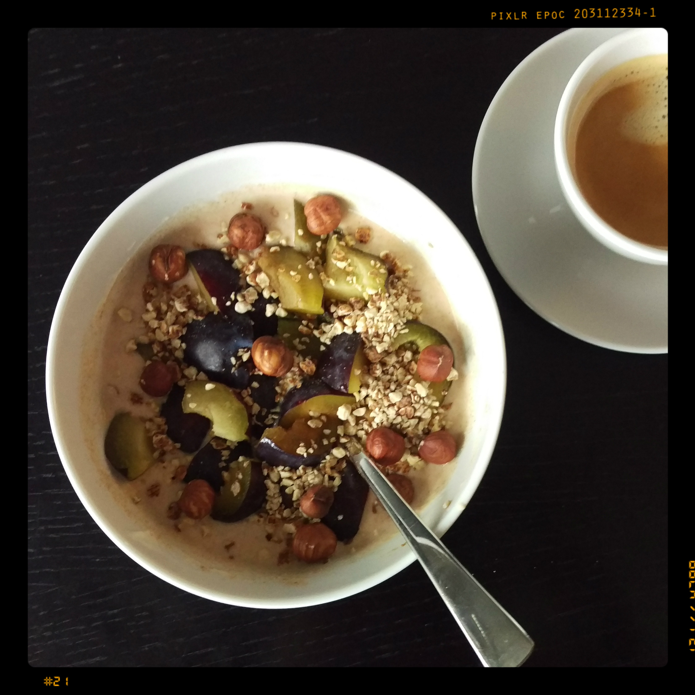 3 Zwetschgen klein schneiden und dazugeben, mit