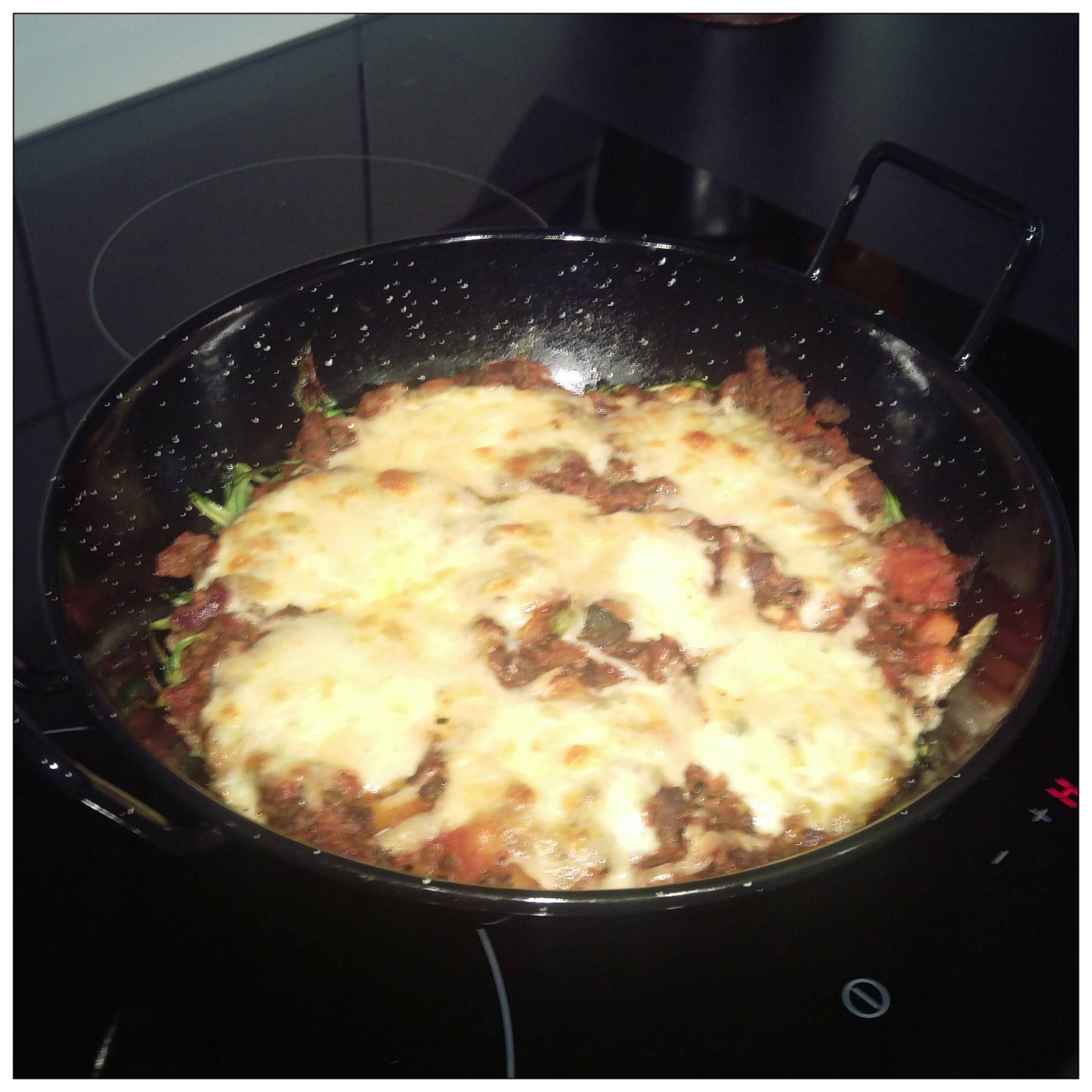 125 g Mozzarella in Scheiben schneiden und auf der Bolognese verteilen, etwa
