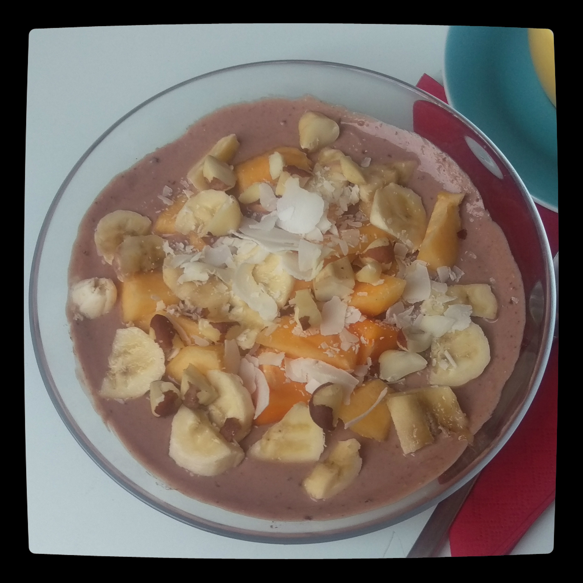 1/2 Banane (kleingeschnitten) darauf verteilen und alles mit