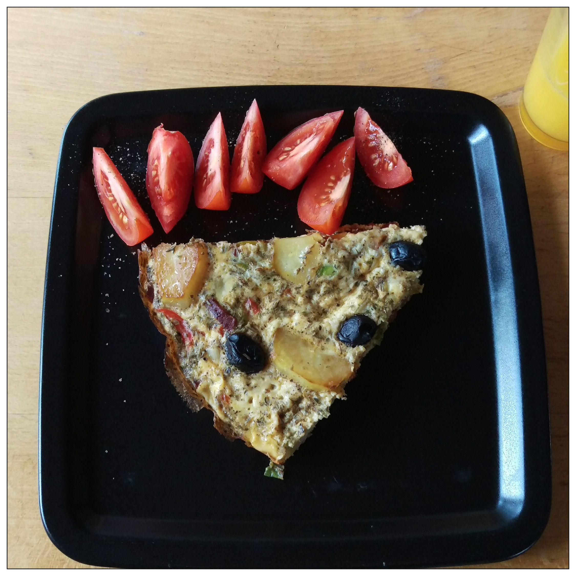 1 EL Kokosöl in der Pfanne mittelstark erhitzen, die Ei-Mischung hineingießen und die Pfanne sofort mit dem Deckel schließen, nach ca. 4 Min. die Hitze auf mittelschwach reduzieren, weitere 10 Min. garen, dann noch ca. 5 Min. bei ganz schwacher Hitze fertig stocken lassen