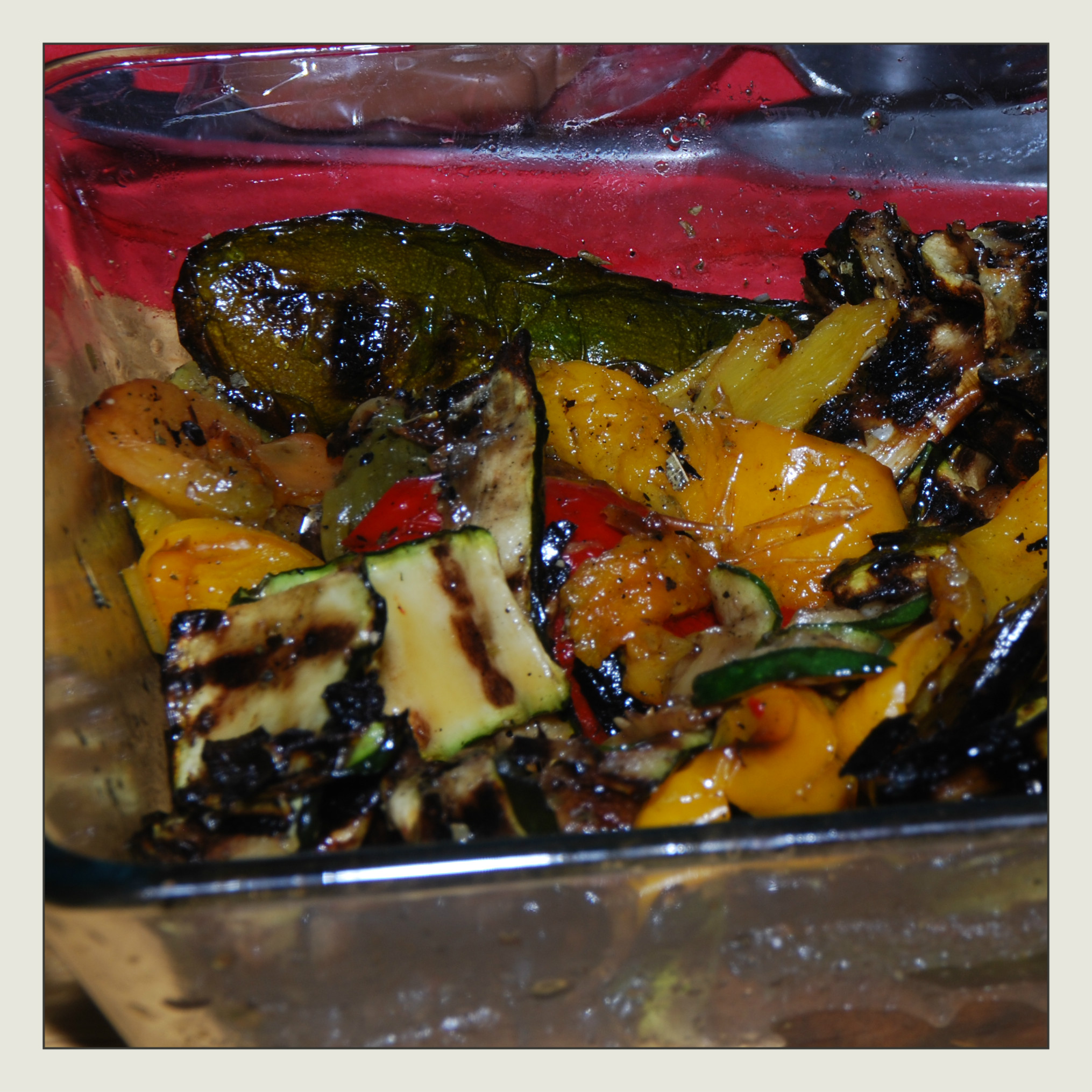 1 gelbe Paprika vierteln und entkernen, mit der Hautseite nach oben auf ein Backblech (ggf. mit Alufolie ausgelegt) legen und auf der mittleren Einschubleiste ca. 15 – 20 Min. backen, bis die Haut dunkel ist und Blasen wirft, dann die Paprika kurz mit einem feuchten Küchentuch abdecken und anschließen die Haut abziehen