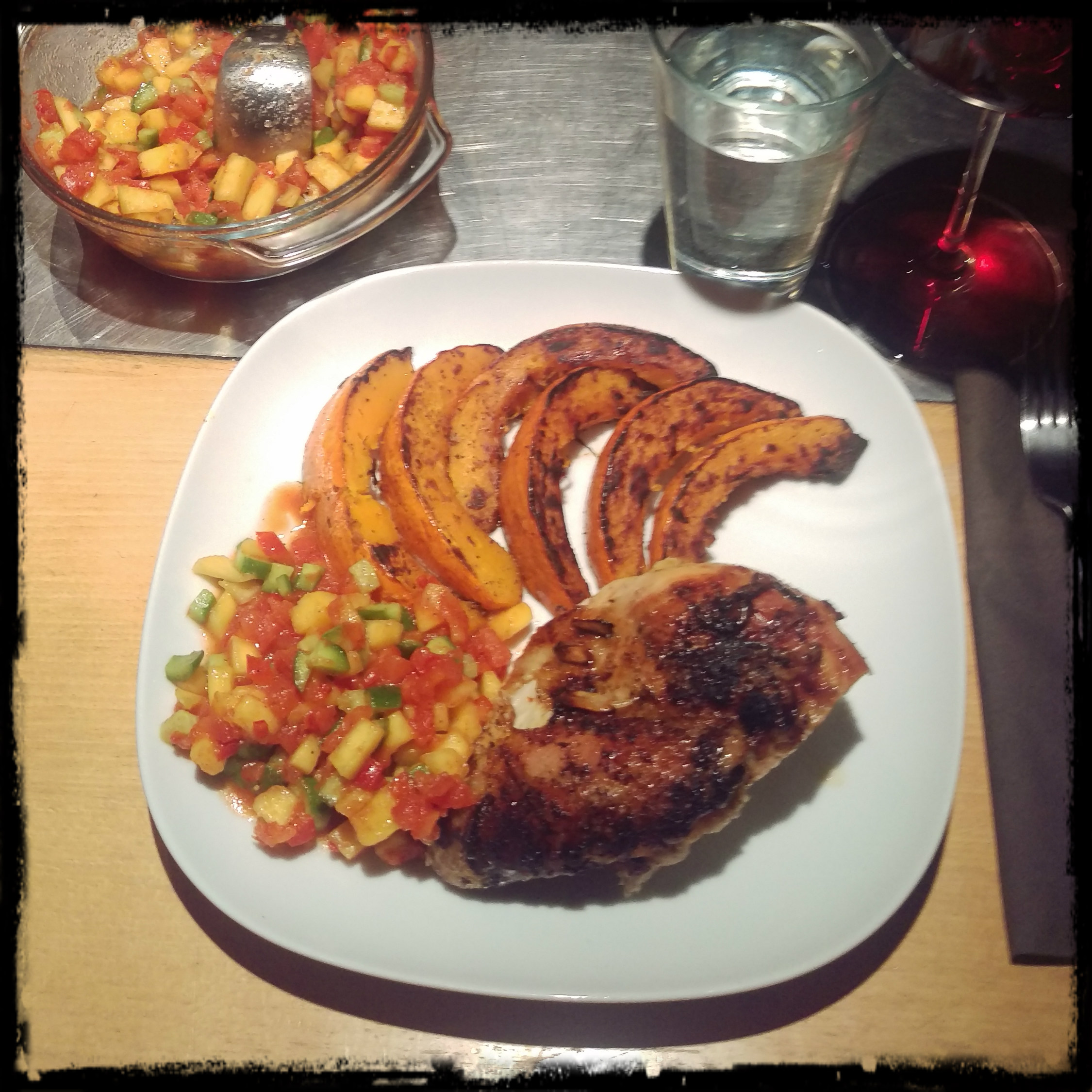 Hähnchen mit Hokaido und Mango-Salsa