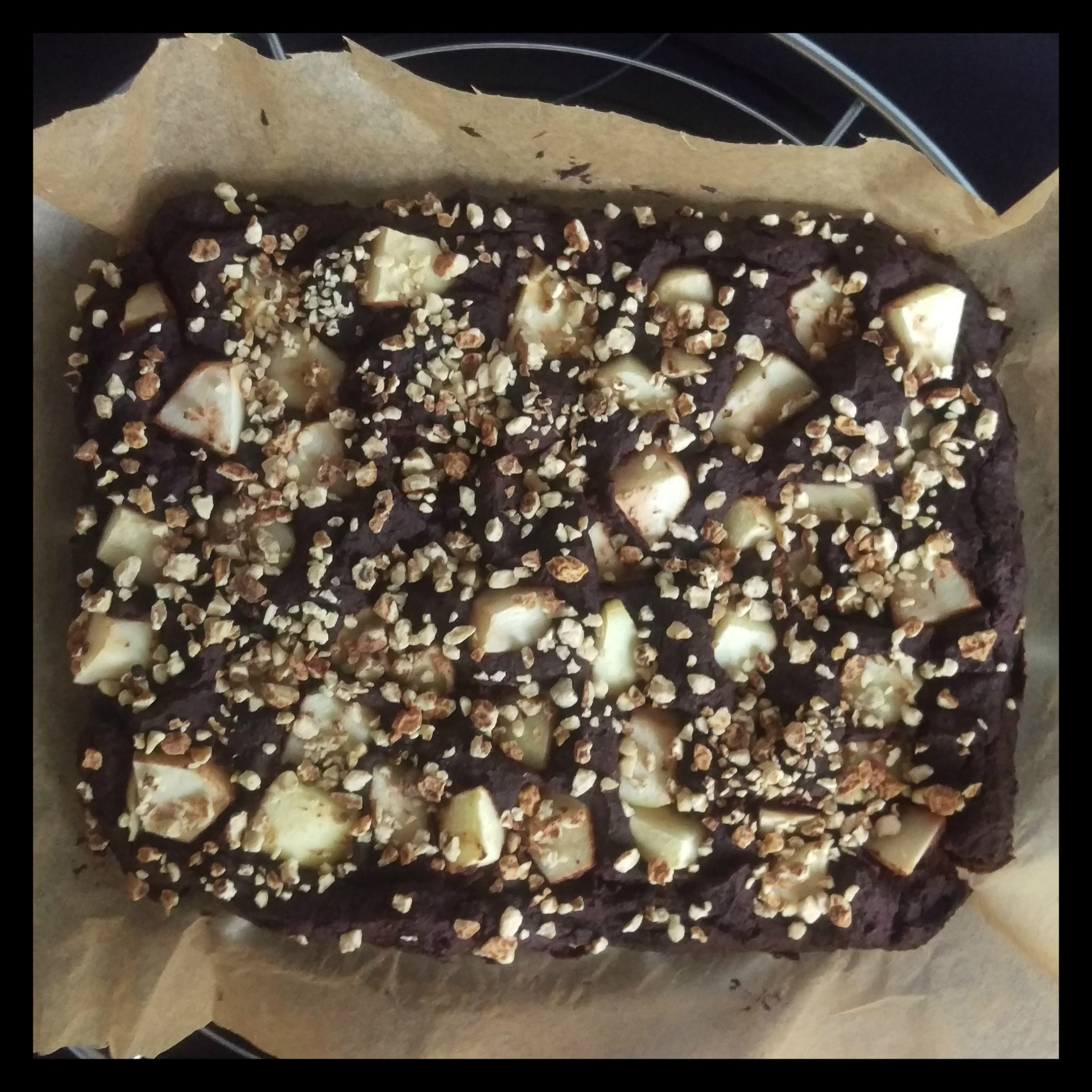 25 g Erdmandelcrunch bestreuen, den Brownie auf der mittleren Einschubleiste ca. 25 Min. backen, anschließend aus der Form nehmen und auf einem Gitterrost auskühlen lassen