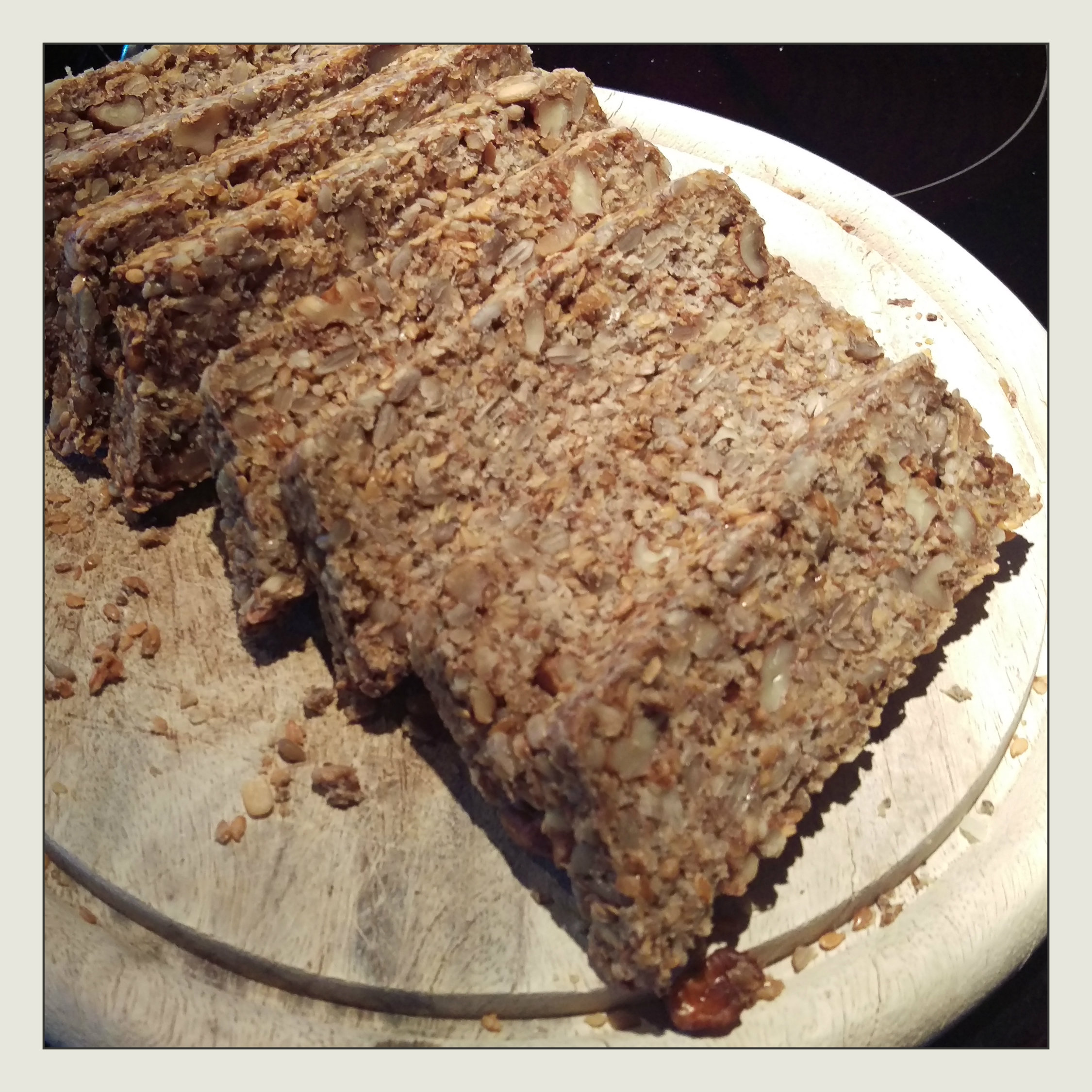 vor dem Schneiden sollte das Brot unbedingt vollständig abgekühlt sein, das Brot kann ich Scheiben von ca. 1 cm Dicke geschnitten(ergibt ca. 18 Scheiben) und eingefroren werden (damit es nicht zusammenklebt, Pergamentpapier zwischen die Scheiben legen)