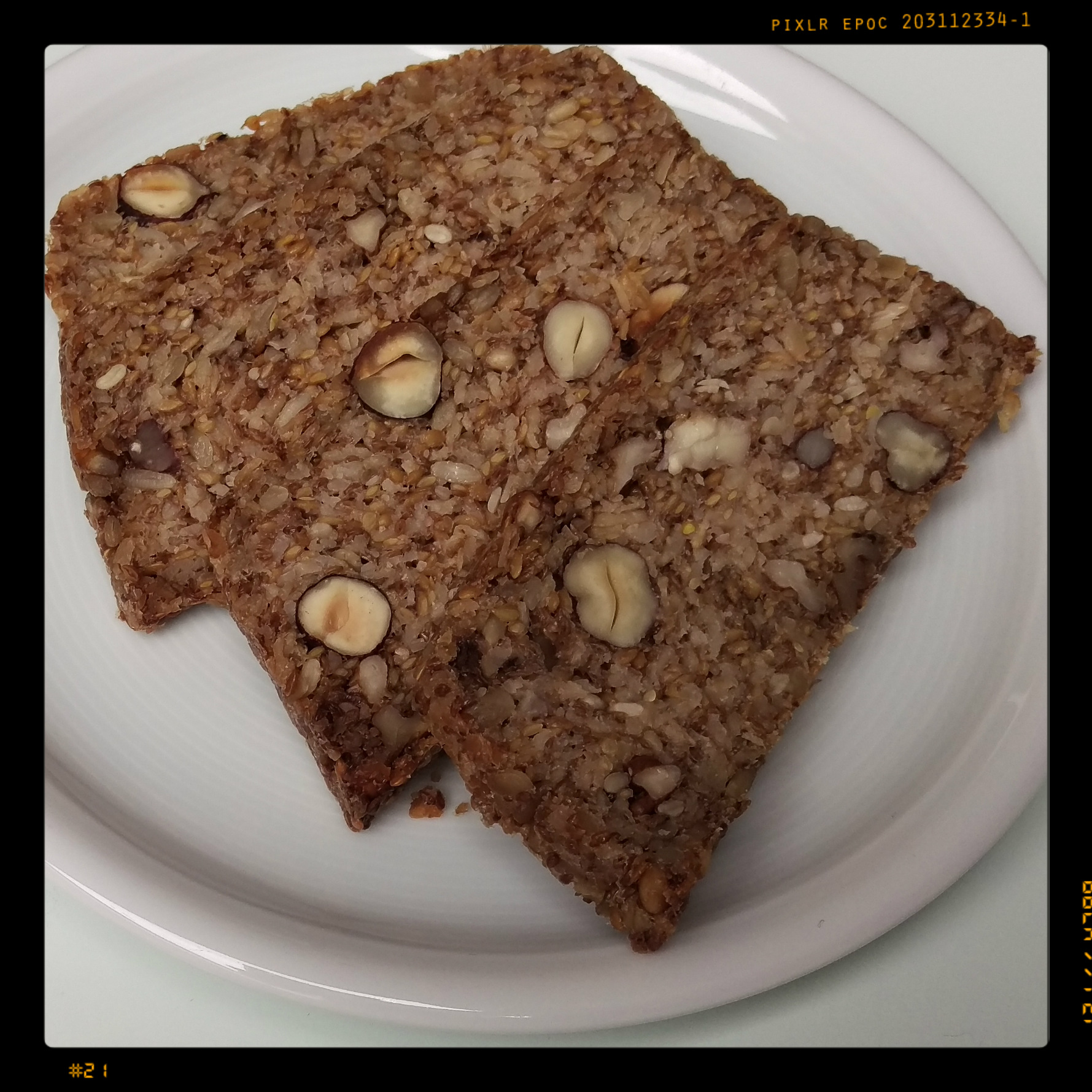 450 ml warmen Wasser (nicht heiß, aber warm genug, dass das Kokosöl schmilzt) mischen, über die Saatenmischung geben und alles gut miteinander vermischen, eine Brotbackform mit