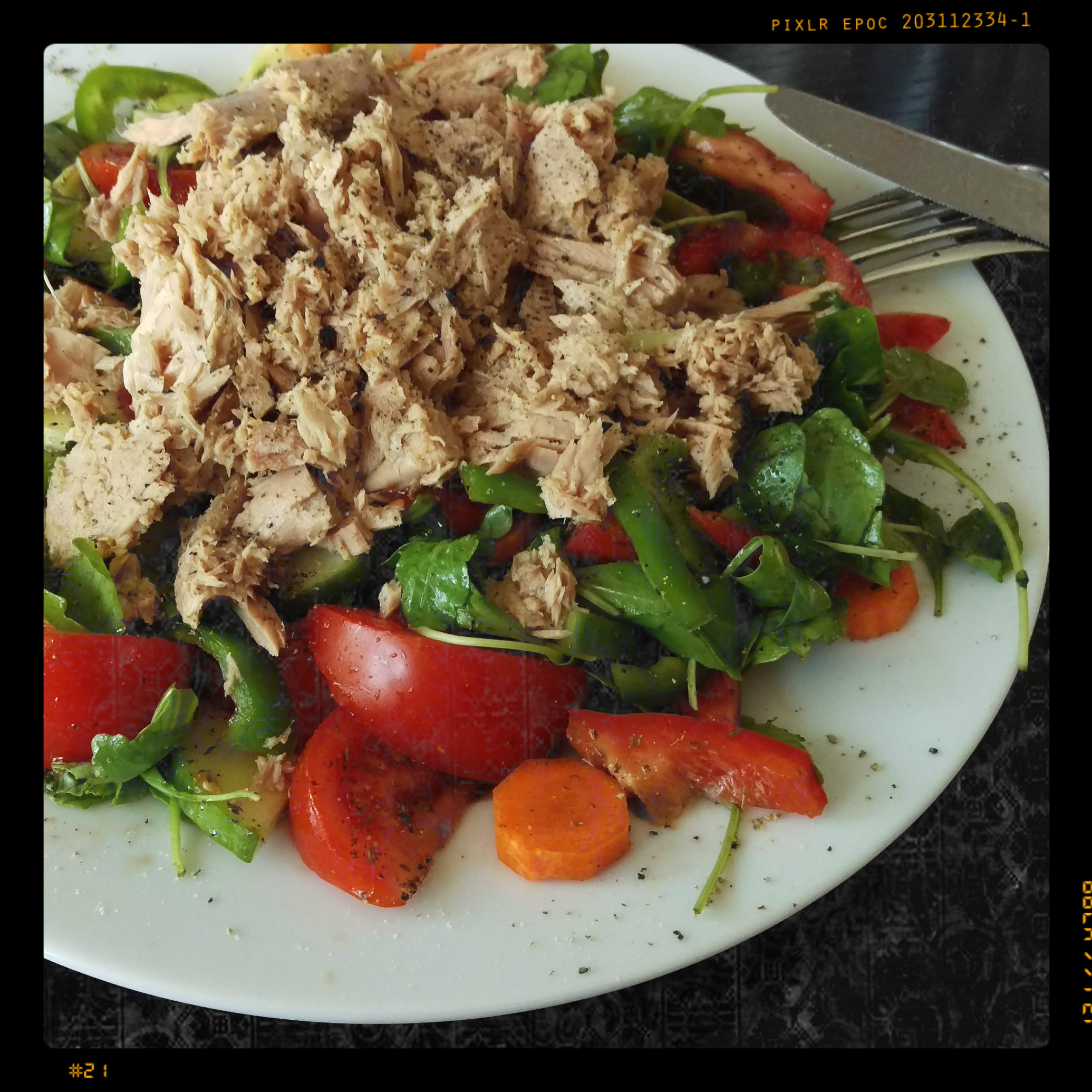 1 Dose Tunfisch (nur den Fisch, ohne Sud/Wasser) darauf verteilen und mit