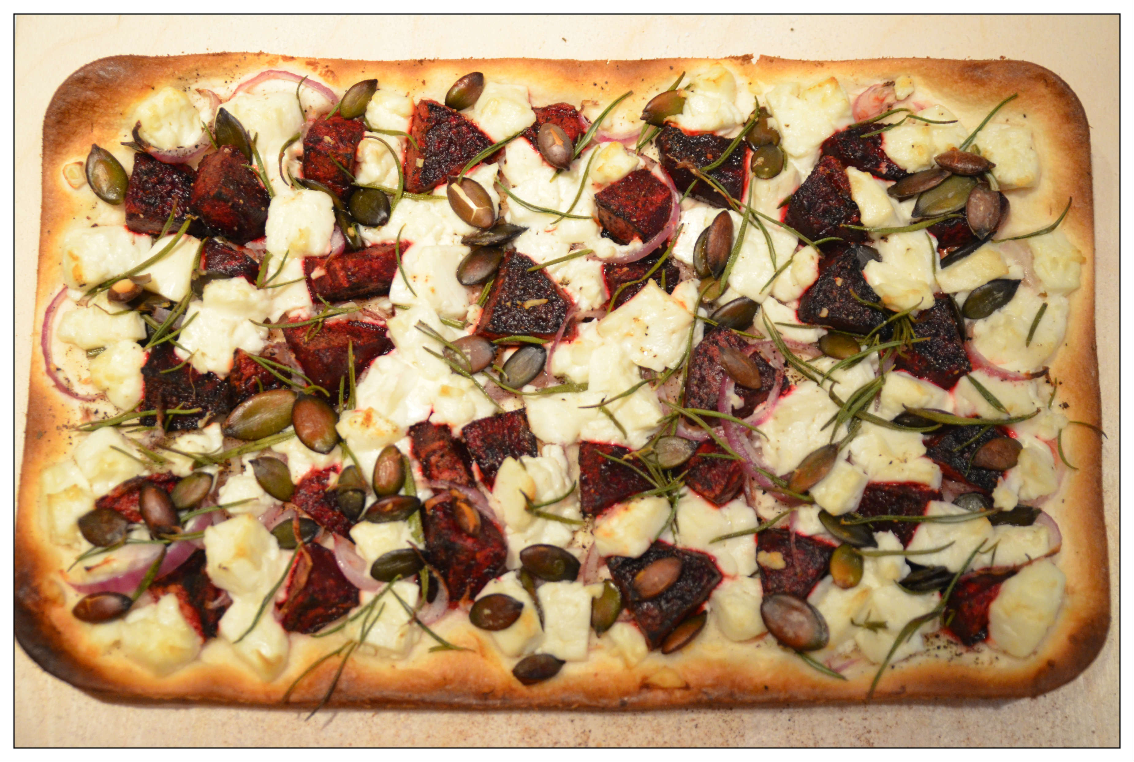 1 EL Olivenöl bestreichen, mit den roten Beten belegen und mit