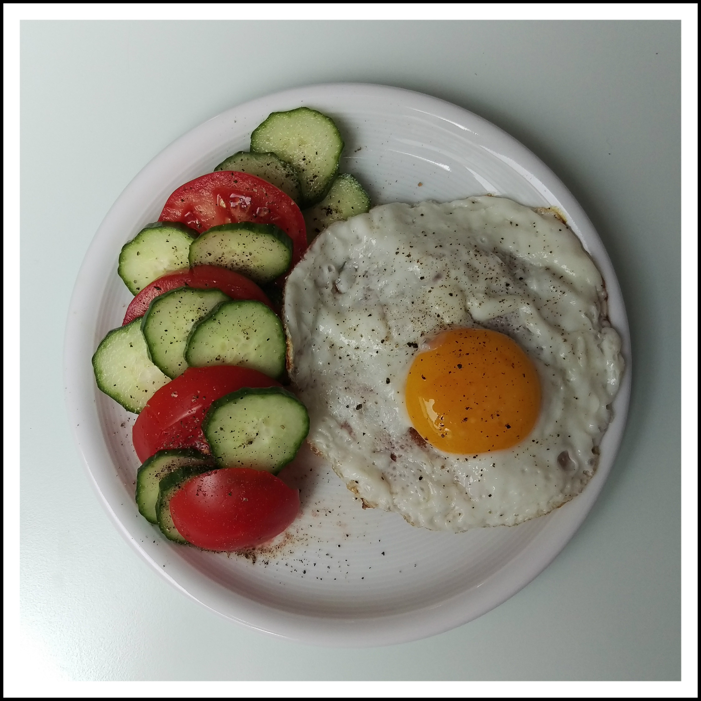 1 TL Olivenbratöl bei starker Hitze zu braten, das fertige Spiegelei dann auf das Brot geben und mit