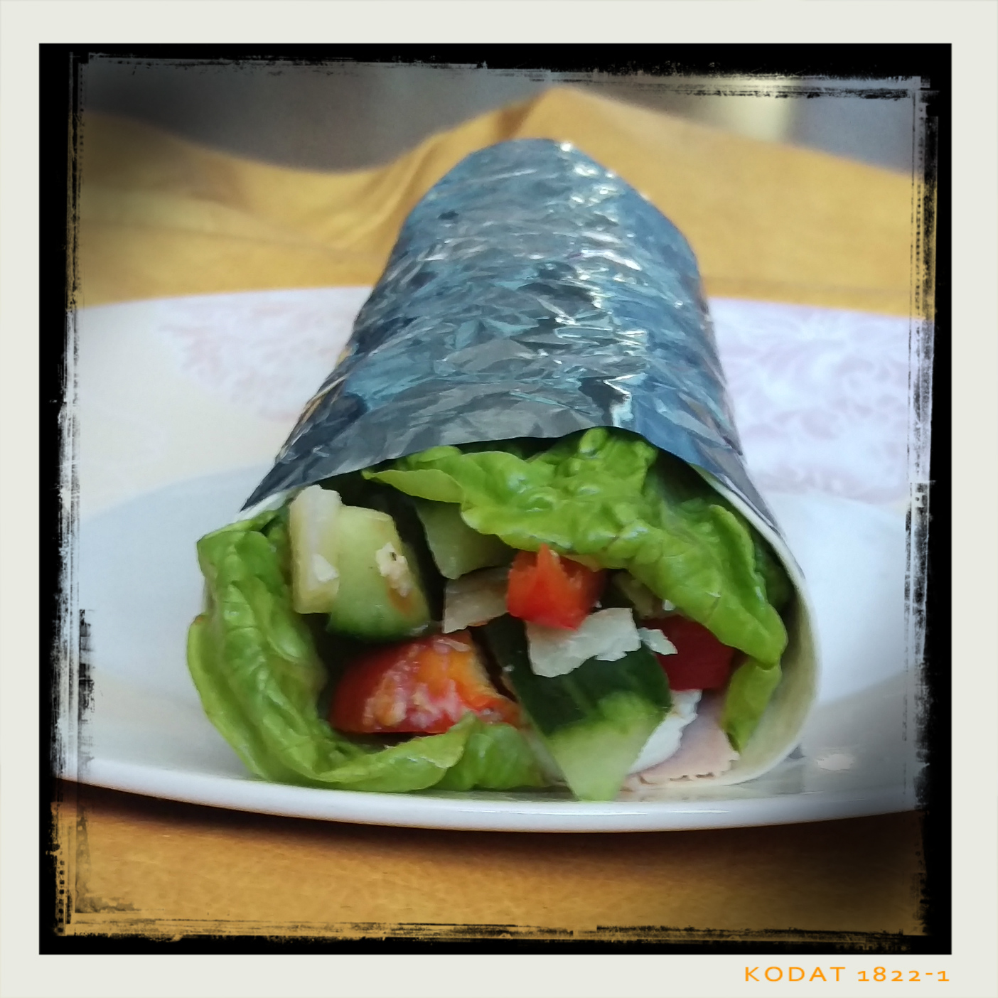 frisch gemahlenem schwarzen Pfeffer würzen, zu einem Wrap fest zusammenrollen und in