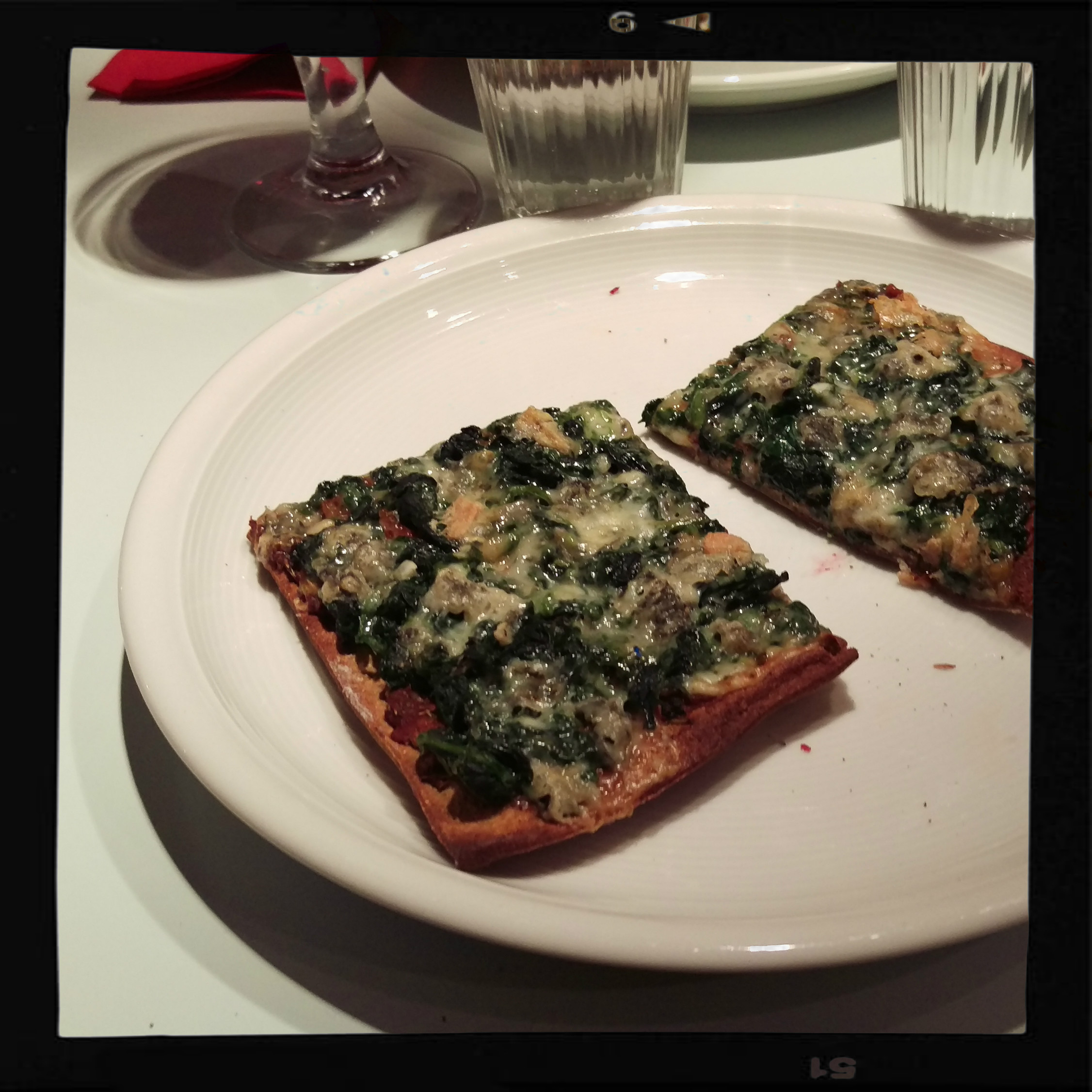 frisch gemahlenem schwarzen Pfeffer – bestreichen, dann die Spinatmischung und anschließend den Gorgonzola darauf verteilen, die Pizza auf dem Stein in ca. 8 – 9 Min. fertigbacken (alternativ auf dem mit Backpapier belegten Rost ca. 13 – 15 Min.)