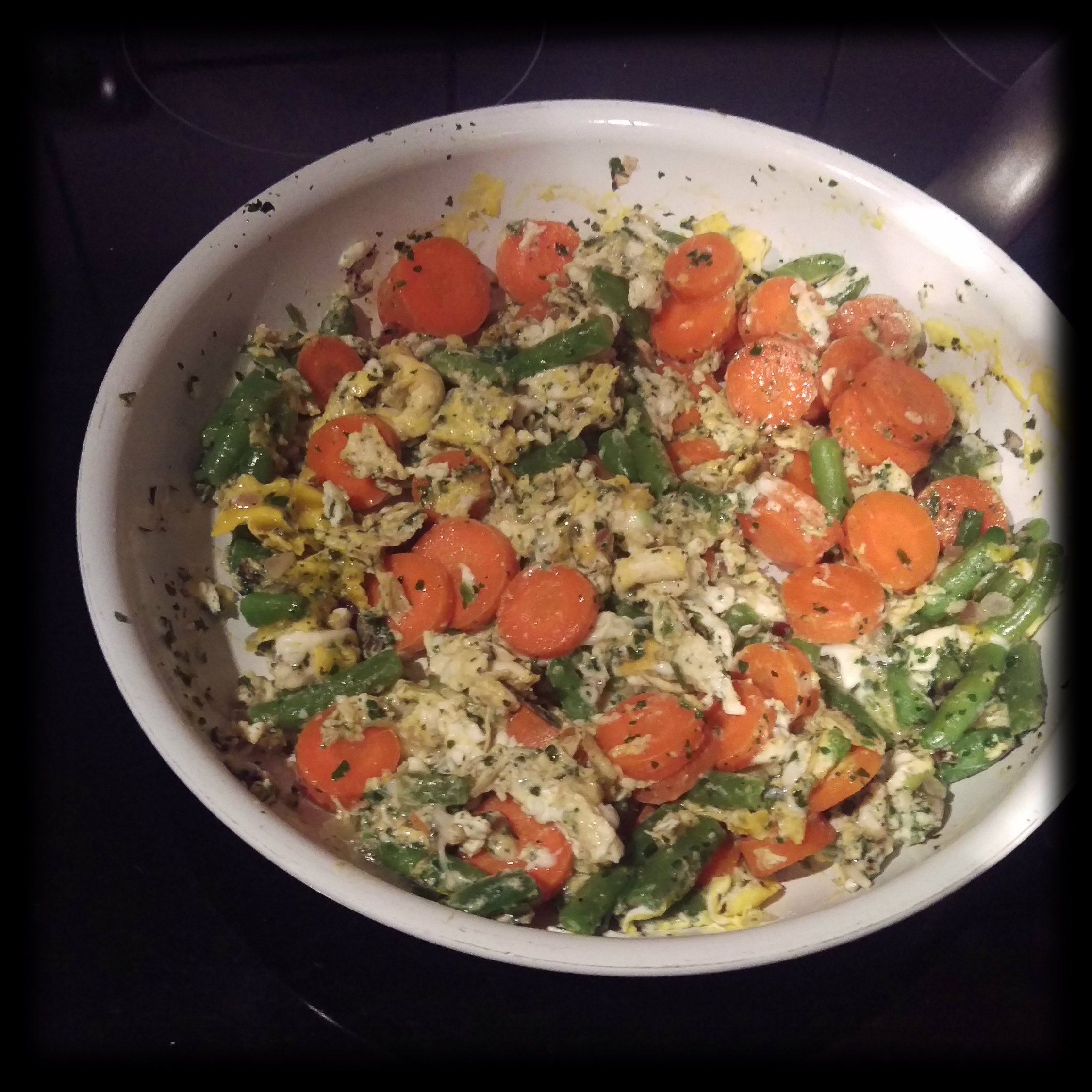 100 g TK Brechbohnen hinzugeben und alles weitere 7 Min. kochen, die Bohnen anschließend kurz in Eiswasser geben und die Möhren in Scheiben von ca. 3 mm Dicke schneiden,