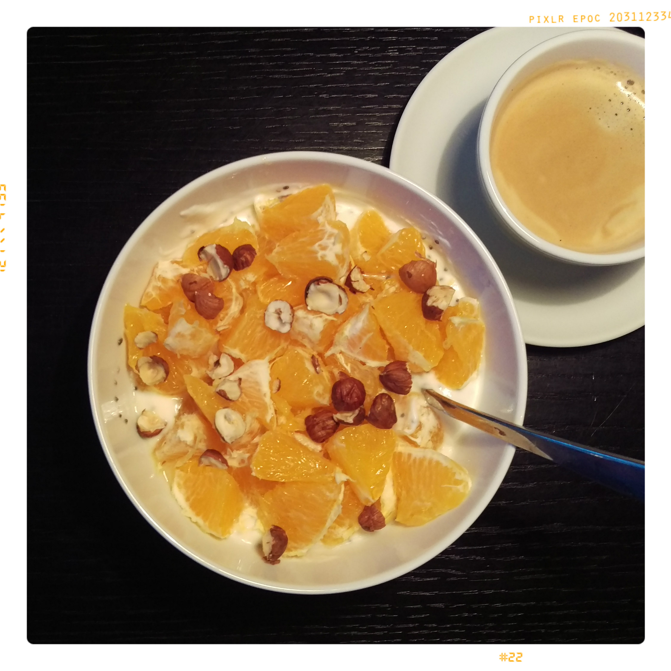 1 gr. Orange (in kleine Stücke geschnitten) darübergeben und mit
