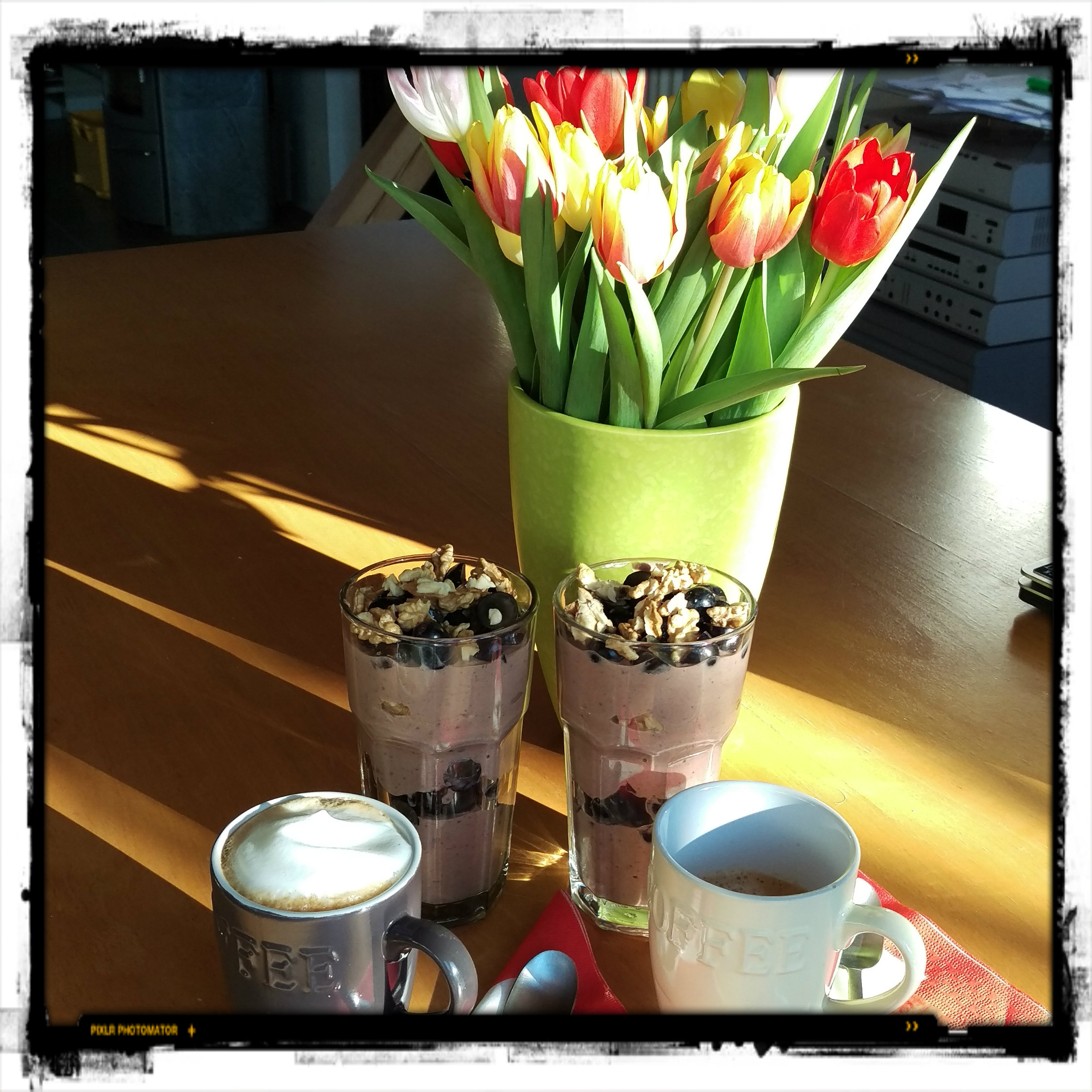 etwas frisch gemahlenem schwarzen Pfeffer verrühren, den Schokoladenjoghurt in ein hohes großes Glas im Wechsel mit insgesamt