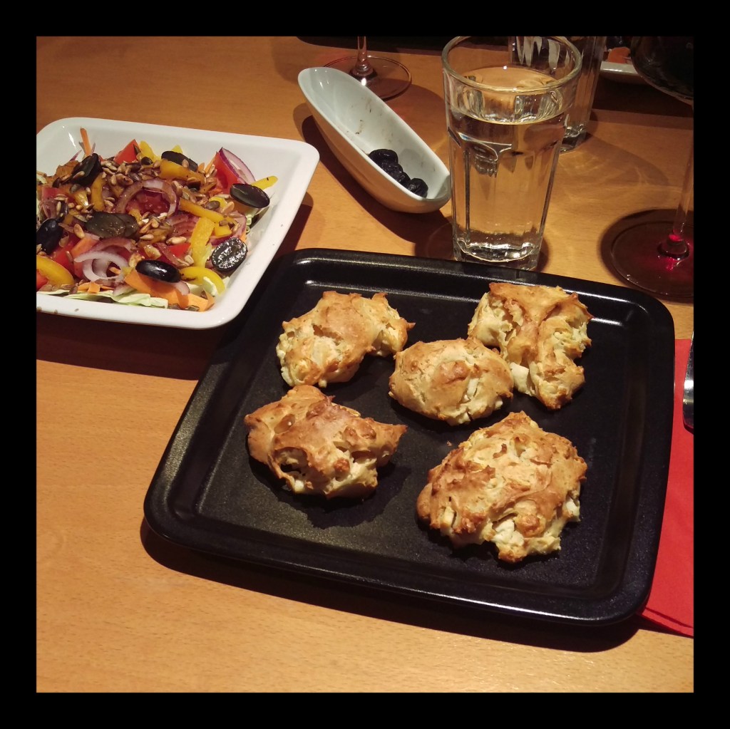 Backpapier auslegen, die Feta-Teigmischung in etwa 10 Portionen auf das Blech setzen und etwa 25 Min. goldbraun backen, währenddessen
