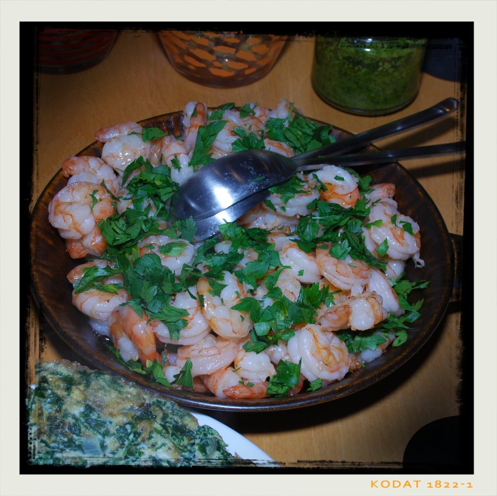 500 g ungekochte Garnelen ohne Kopf und Schwanz (frisch oder TK, letzteres aufgetaut) mit etwas