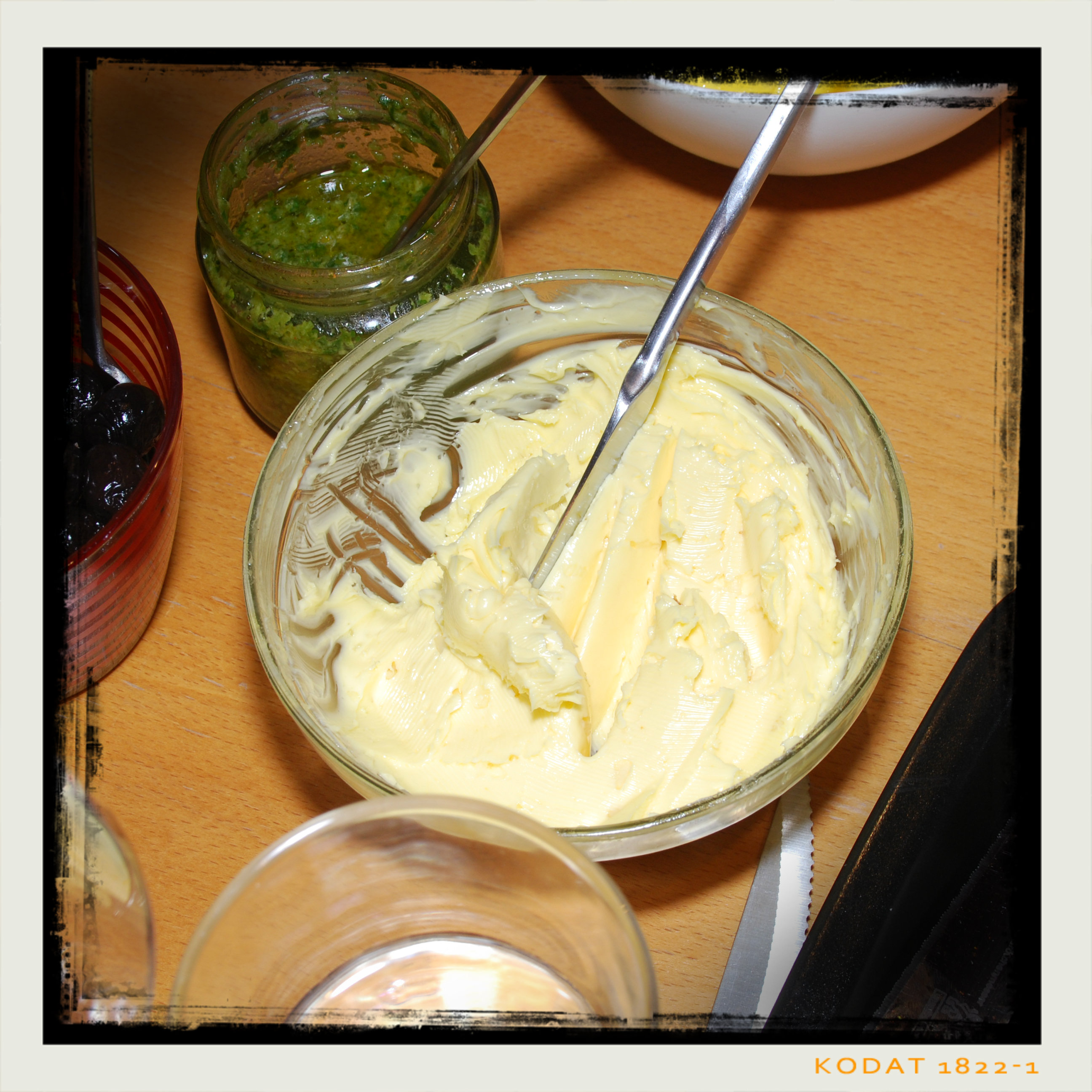 Knoblauchbutter schmeckt prima zu Baguette, angeröstet oder auch nur frisch, außerdem lässt sich damit gut spanisches Knoblauchbrot für ein Tapas-Buffet oder als Beilage zu den Sherry-Champignons (Rezept siehe 20. März 2017) herstellen, die Menge Knoblauchbrot reicht als Beilage für 4 – 6 Personen