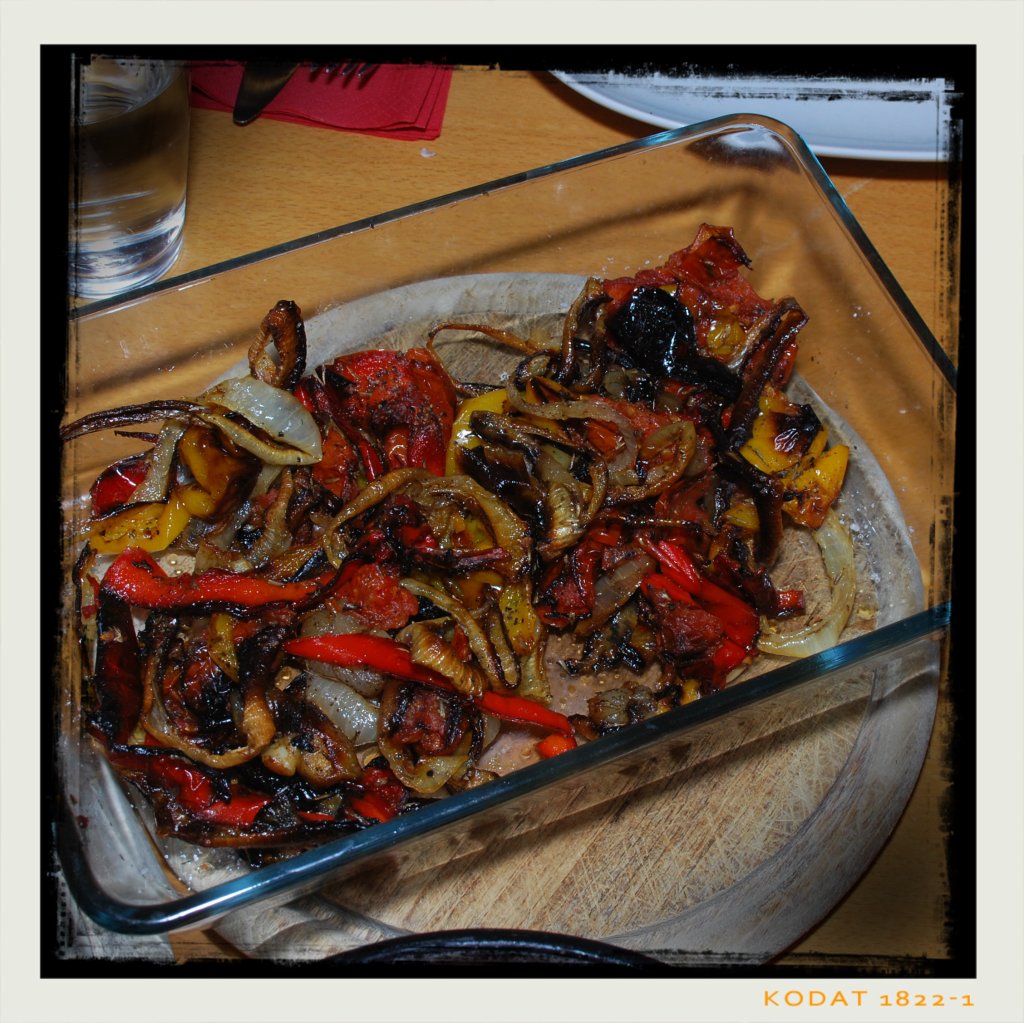 frisch gemahlenem Pfeffer würzen, das Blech auf mittlerer Schiene in den Backofen geben und das Gemüse ca. 30 Min. rösten, es sollte dann nicht mehr allzu feucht, aber noch nicht schwarz sein,
