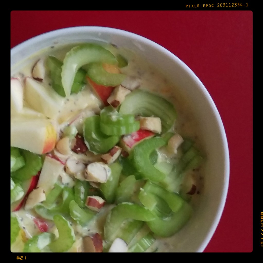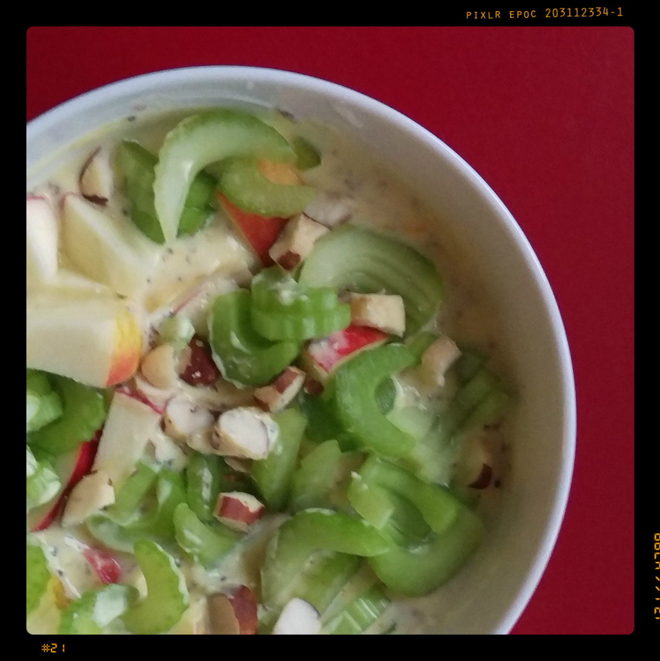 1 1/2 Stangen Staudensellerie (in dünne Scheiben geschnitten) darübergeben und mit