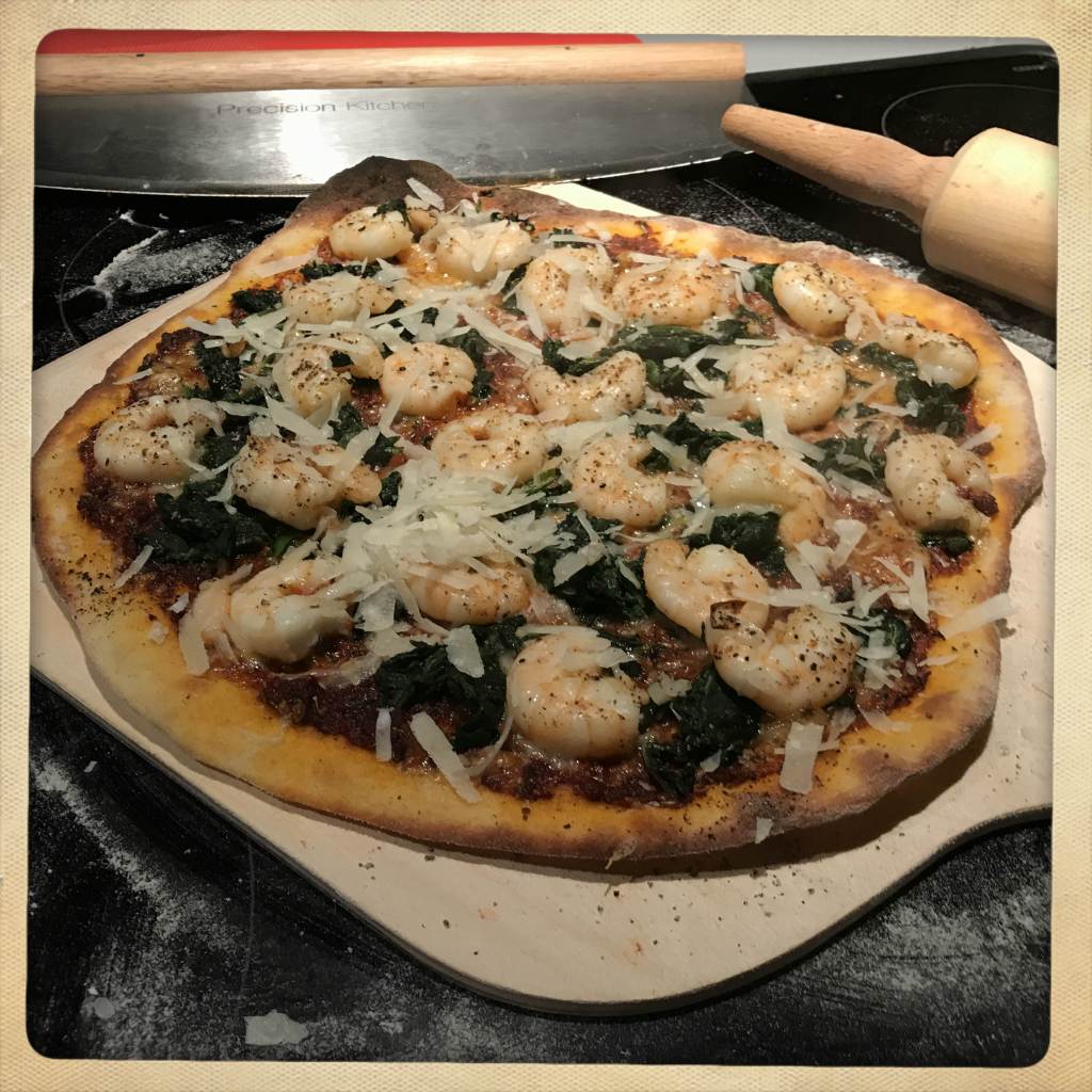 ein richtig schön dünner Pizzateig, also nicht ganz so viele Kohlehydrate