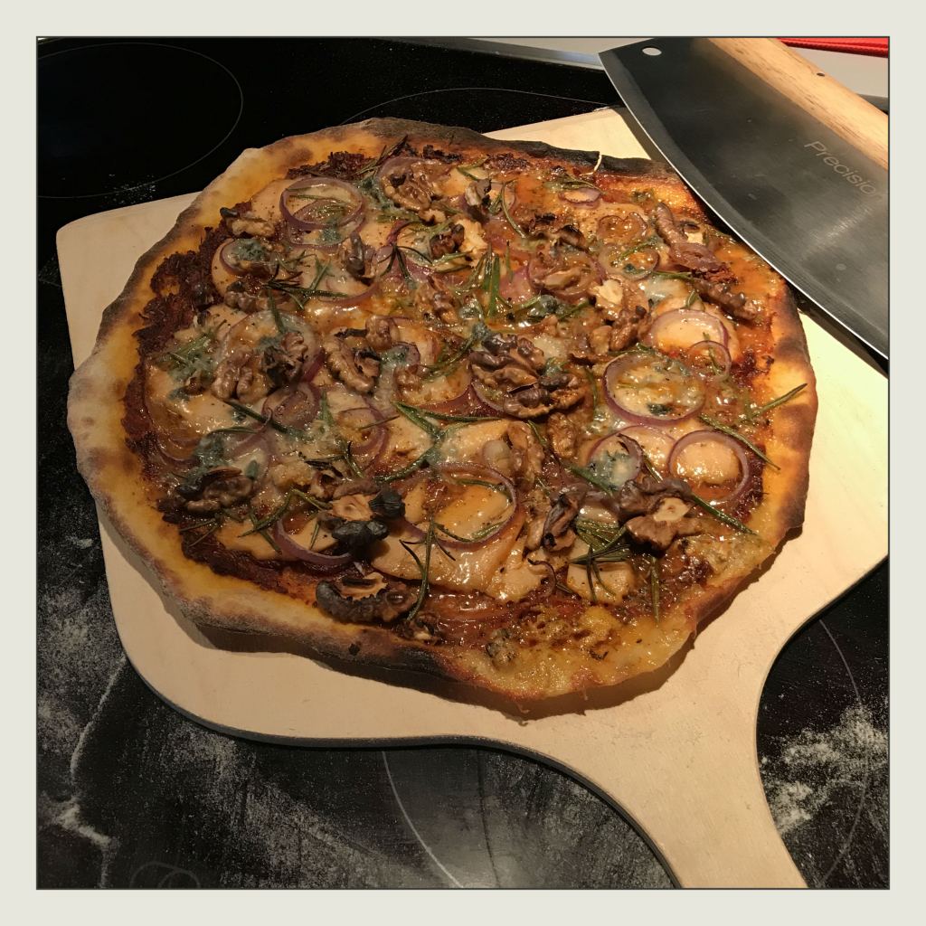 und naja, es ist auch ein richtig schön dünner Pizzateig