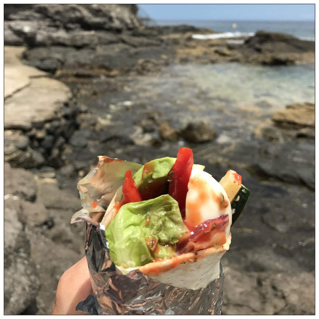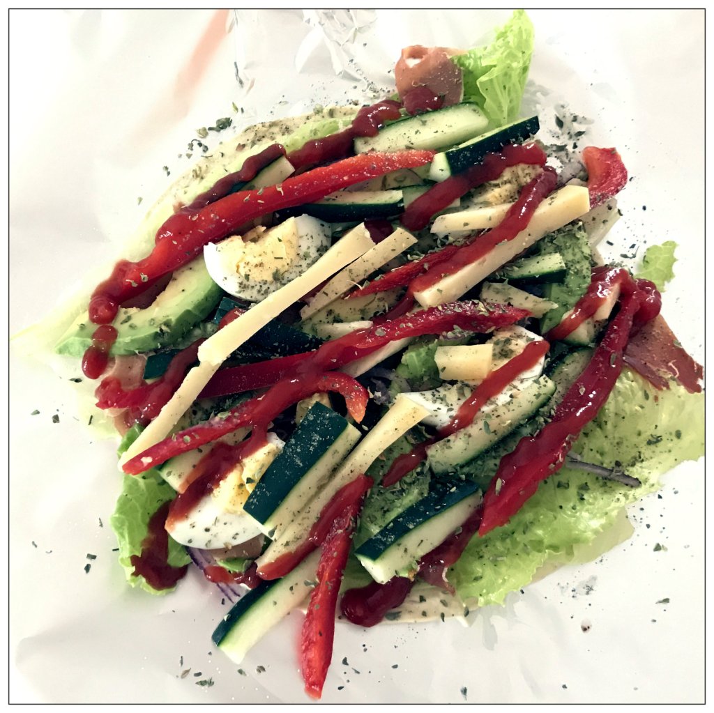 frisch gemahlenem schwarzen Pfeffer würzen, zu einem Wrap fest zusammenrollen und in