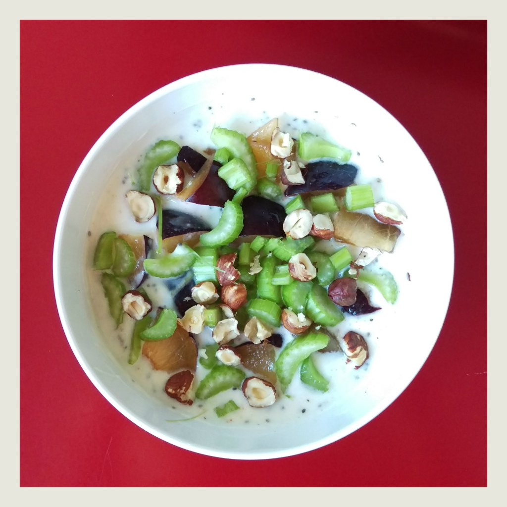 1 Stange Staudensellerie (in dünne Scheiben geschnitten) darüber geben und anschließend