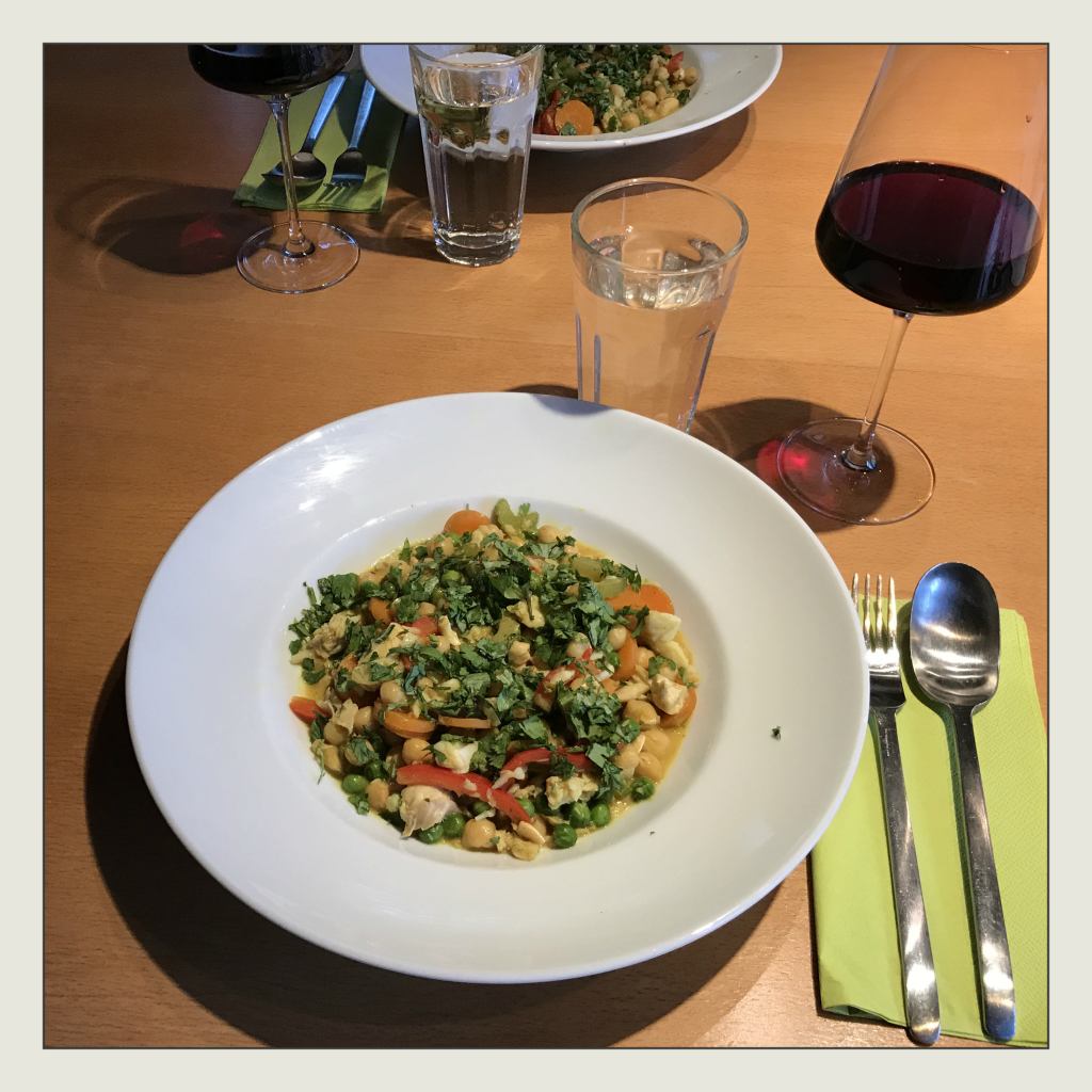 die Cashewkerne unter das Curry mischen und alles ggf. noch mit