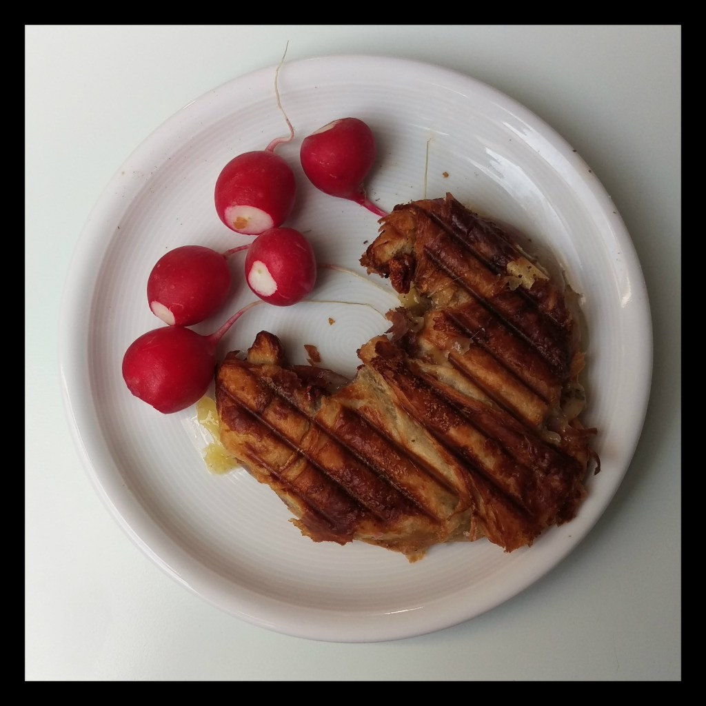 das Panini z. B. mit Radieschen, Tomatenvierteln oder Gurkenscheiben servieren