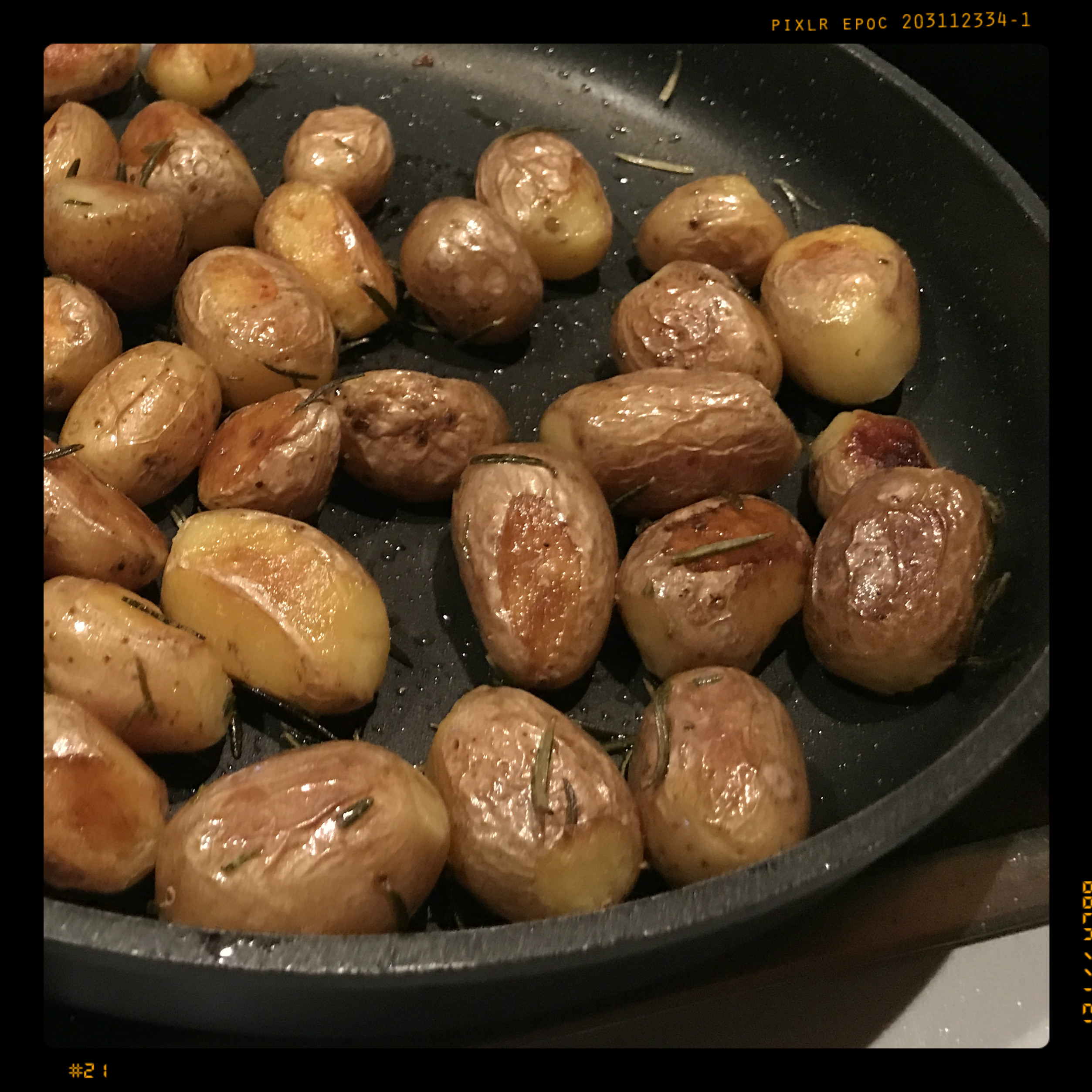 Rosmarin von 3 Zweigen (abgezupft) hinzugeben, die Kartoffeln