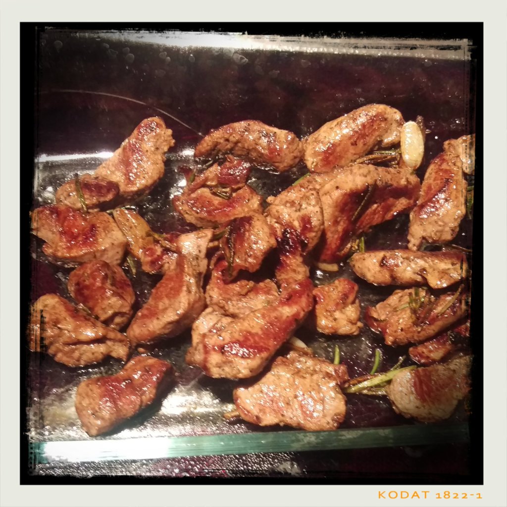 frisch gemahlenem schwarzen Pfeffer würzen und für ca. 10 Min. unter den Grill schieben, bis der Schafskäse leicht gebräunt ist, in der Zwischenzeit die Lammfiletstreifen in