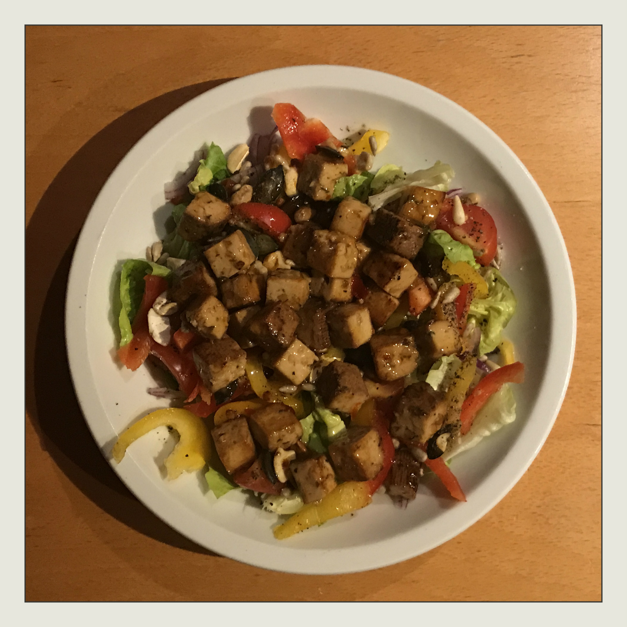 100 g Mandel-Nuss-Tofu in Würfel von ca. 1 cm Kantenlänge schneiden und in