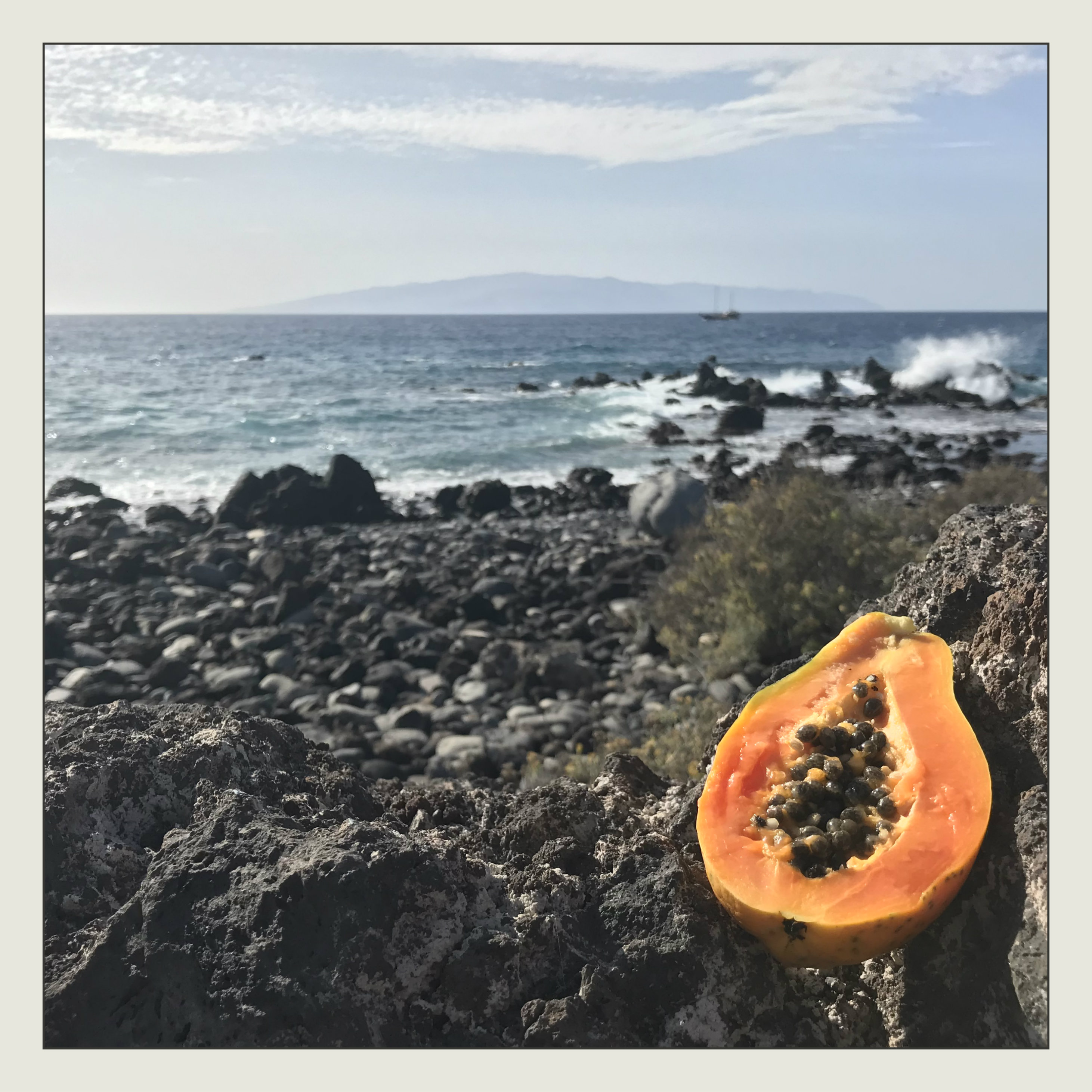 reife Papaya ist echt lecker als Snack für zwischendurch, nur schade, dass es sie bei uns so selten gibt, also, wenn ihr auf die Kanaren fliegt, dann gönnt euch