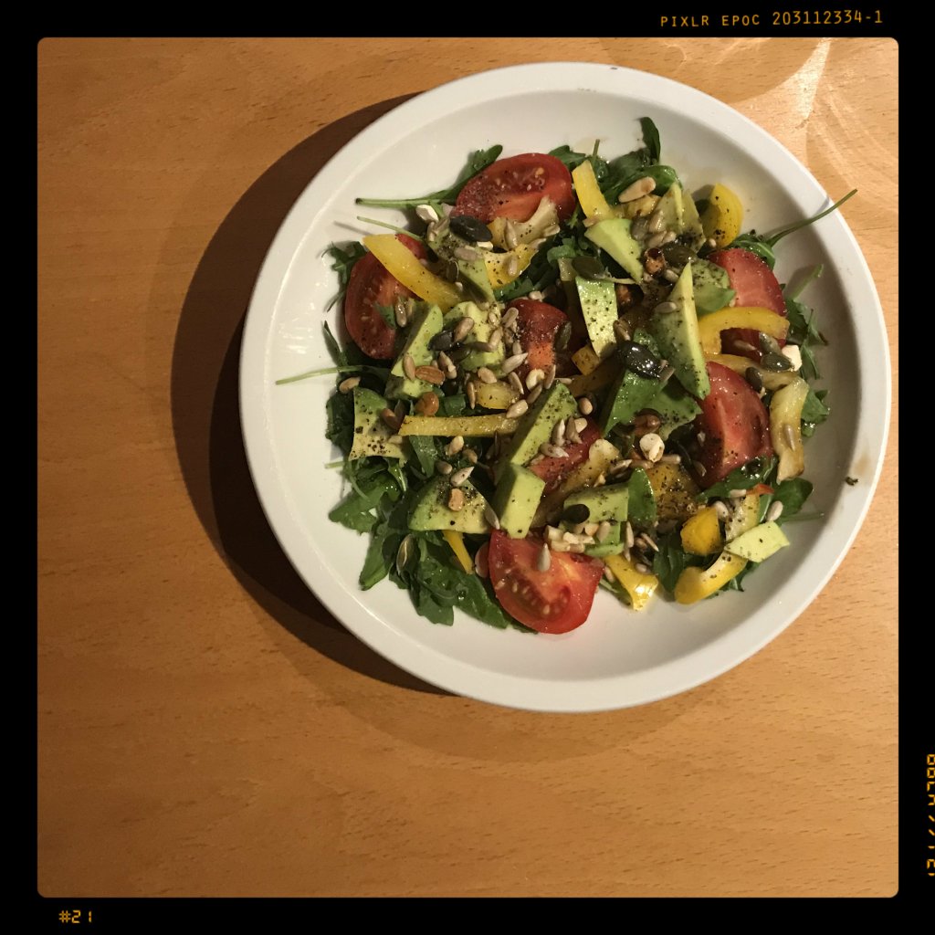 frisch gemahlenem schwarzen Pfeffer zu einem Salat mischen und mit den Salatkernen bestreuen