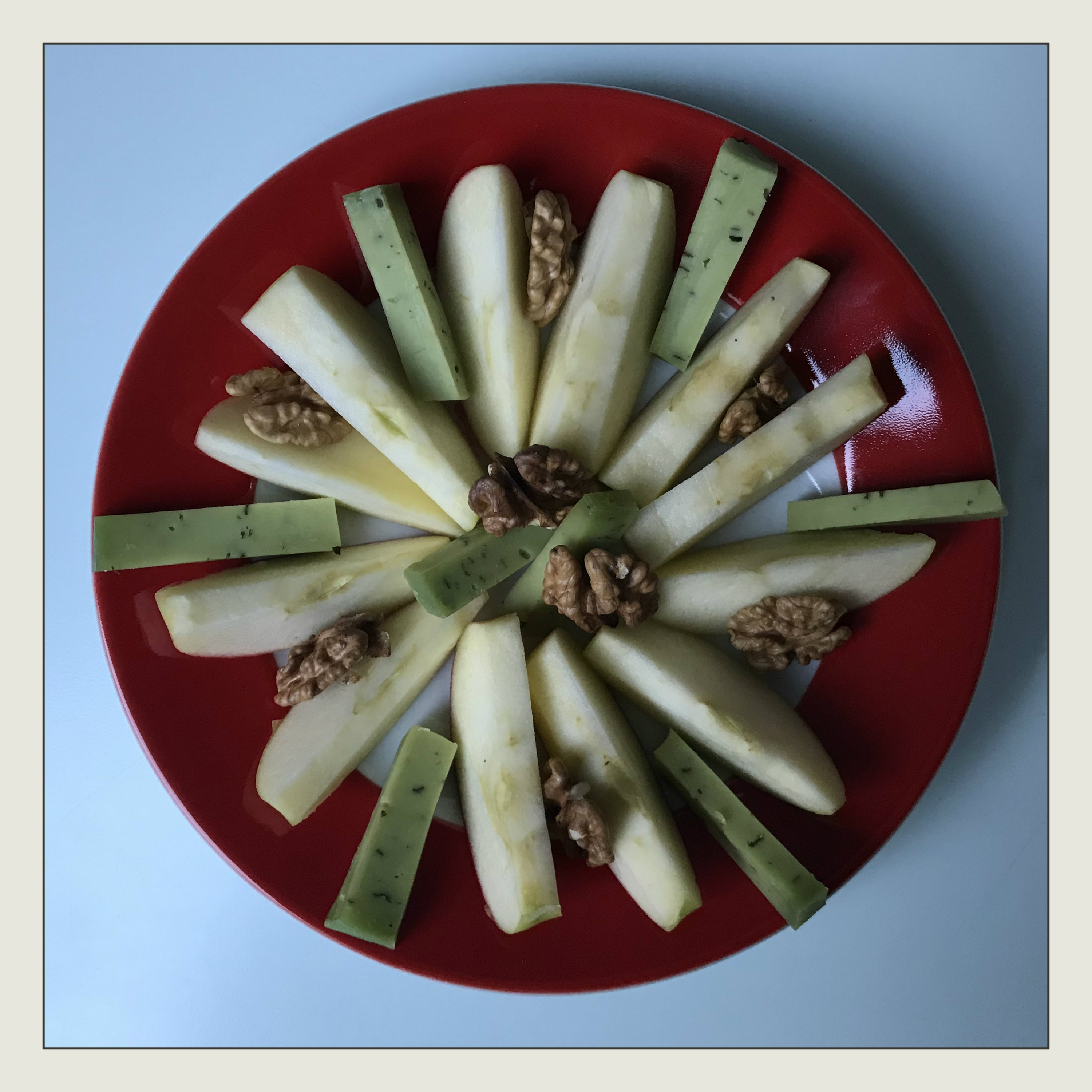1 großen Apfel in Spelten schneiden,