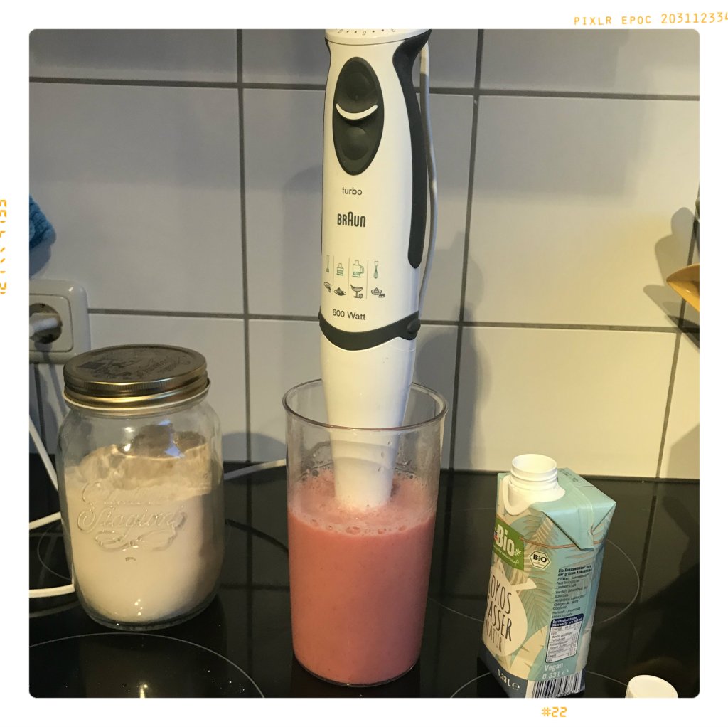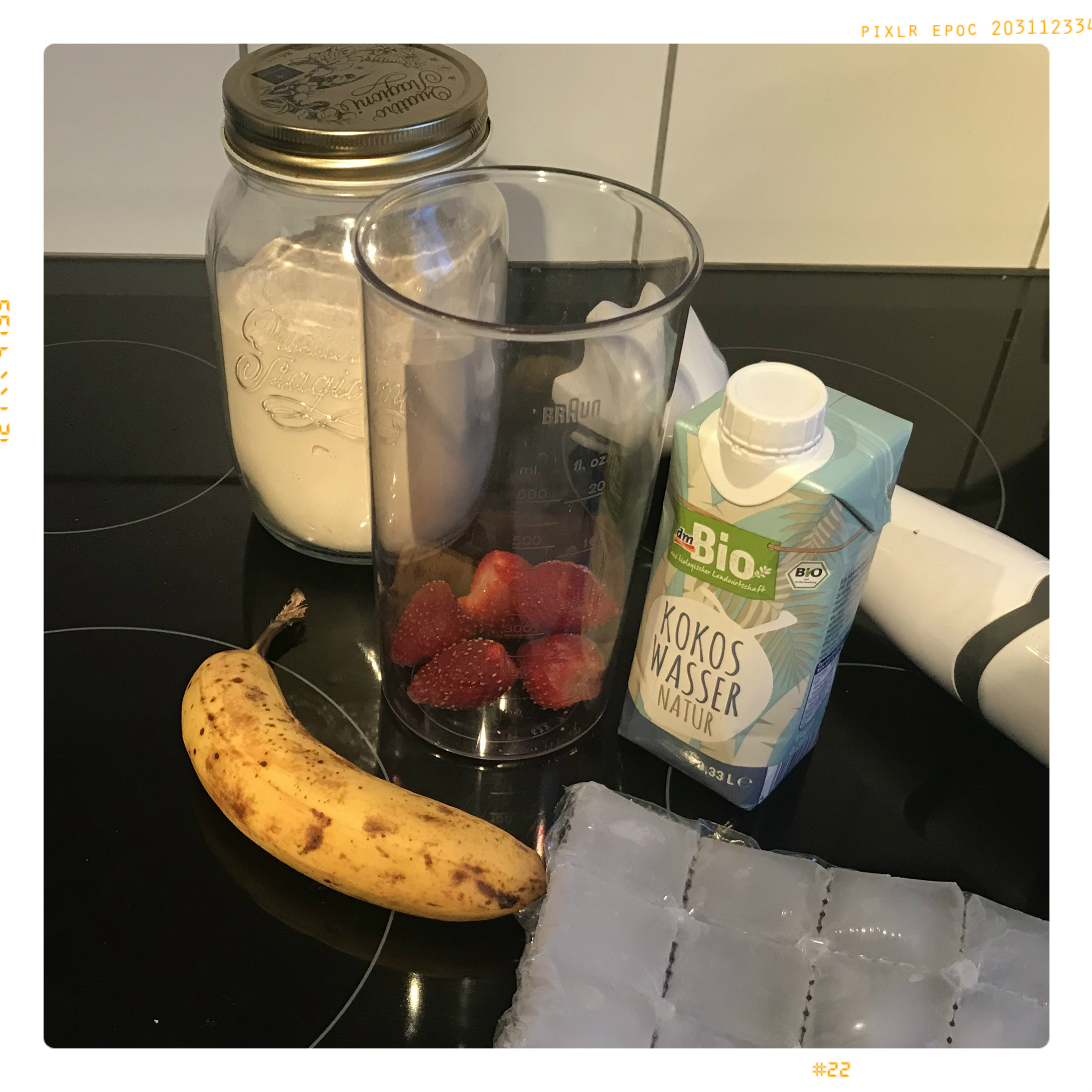 3 Eiswürfeln im Mixer einen Shake zubereiten