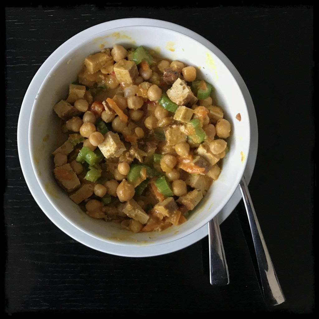 1/2 Glas Thai-Curry-Sauce (160 ml – z. B. DM Bio) unter das Gemüse mischen und noch 1 Min. erhitzen