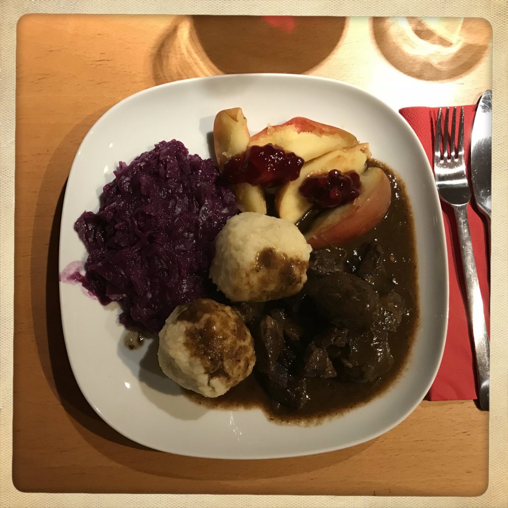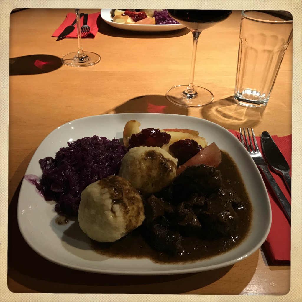 Wildschweingulasch mit Kartoffelpüree und Rotkohl vom 26. Januar 2018