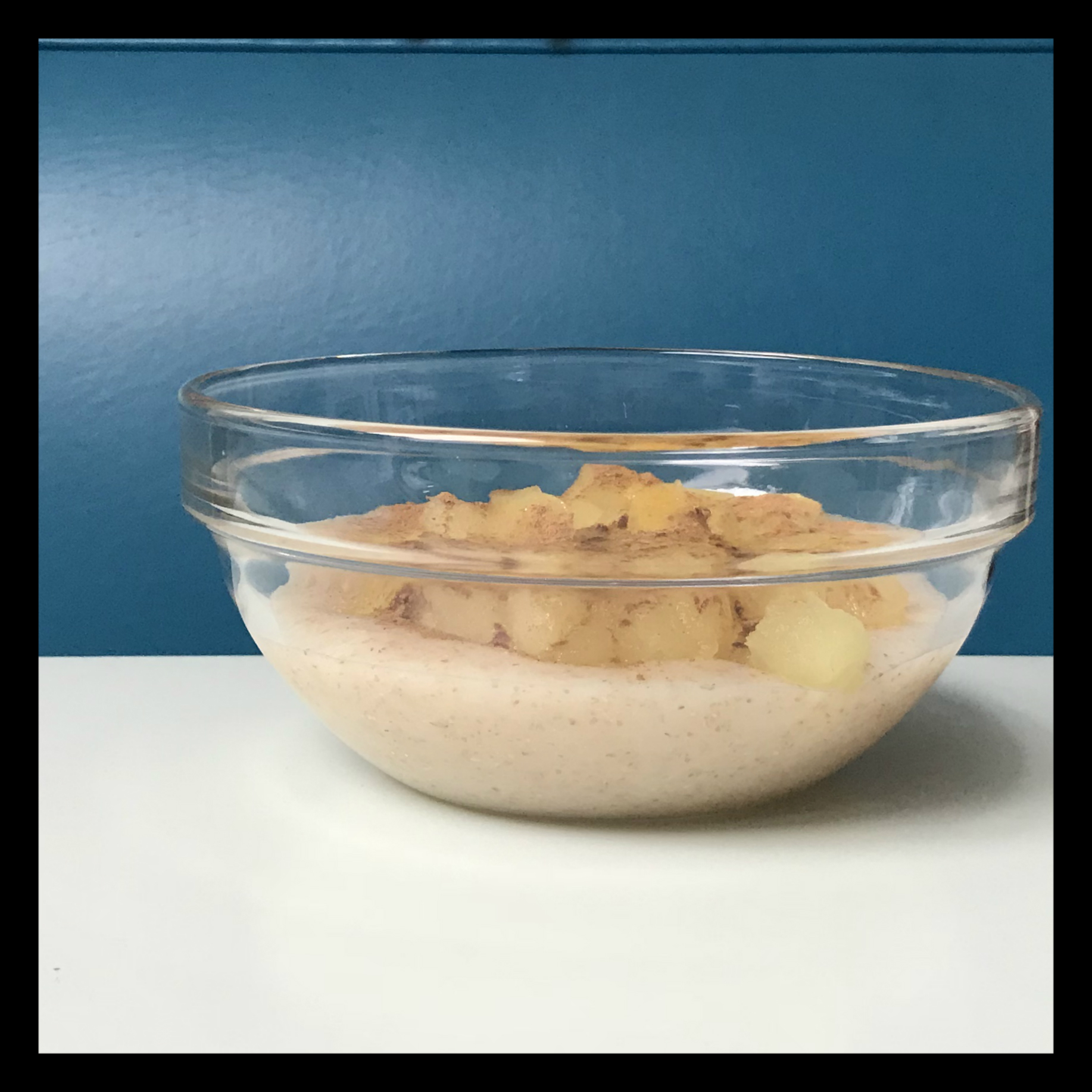 Pudding und Apfelkompott können warm oder kalt serviert werden, dazu den Apfelkompott auf den Grießpudding geben und mit