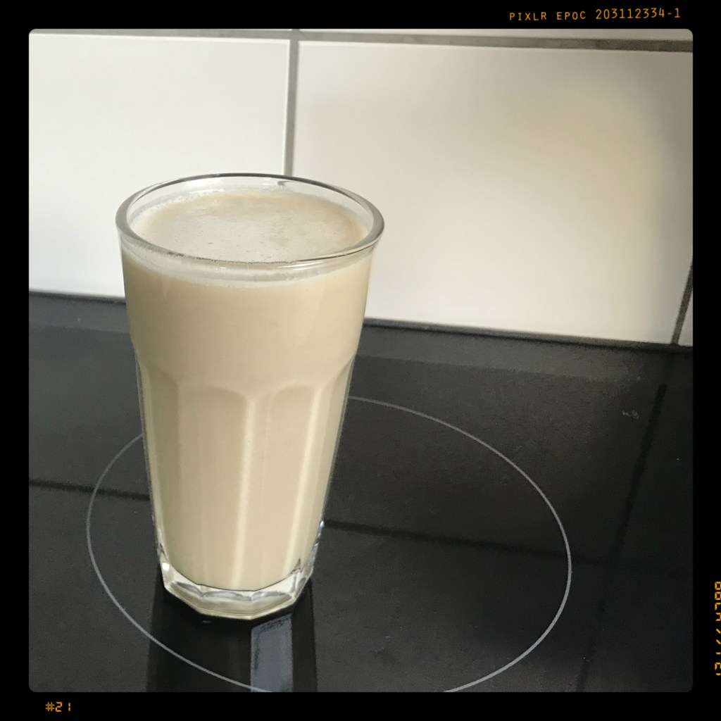 4 Eiswürfel hinzufügen und mit dem Mixstab zu einem Shake verarbeiten