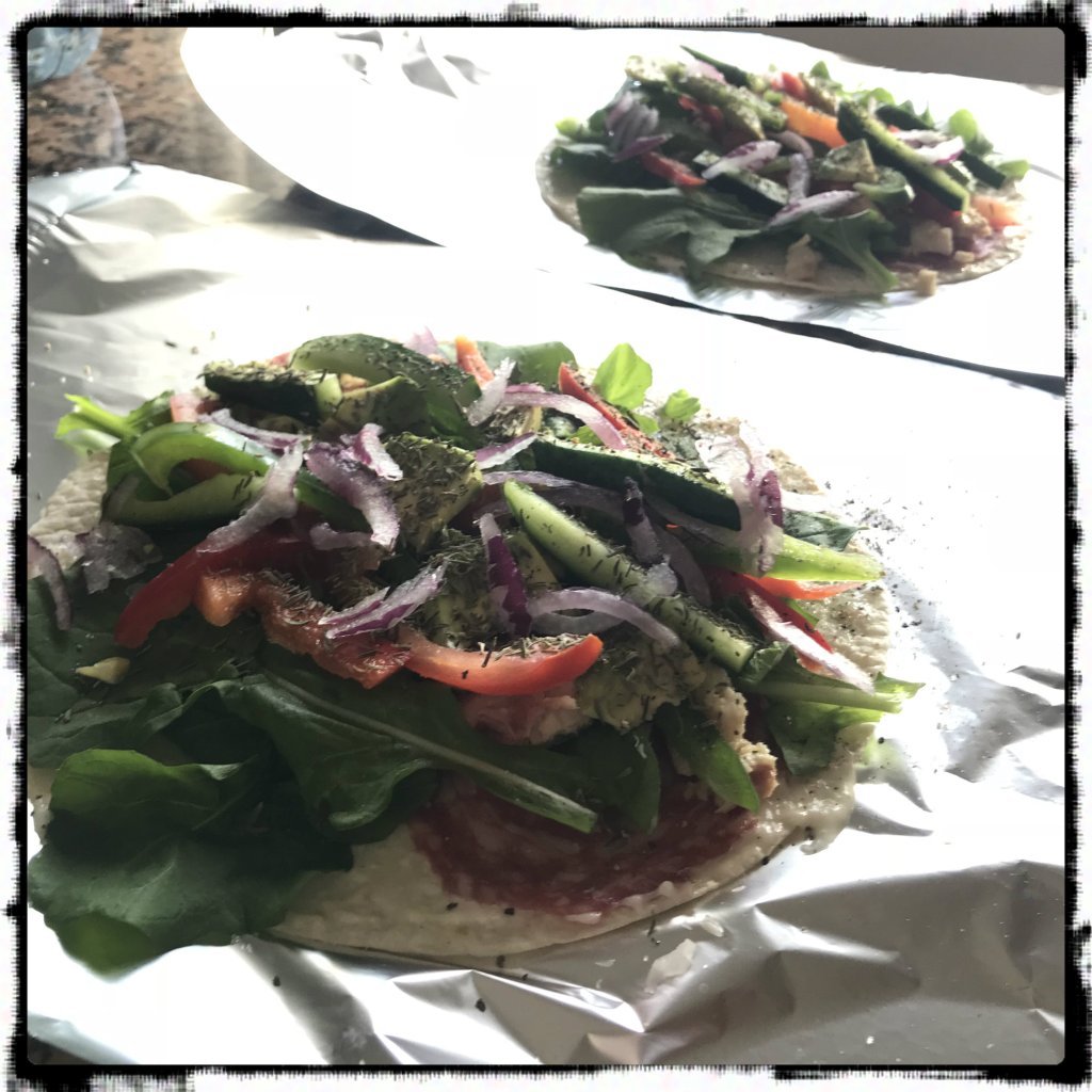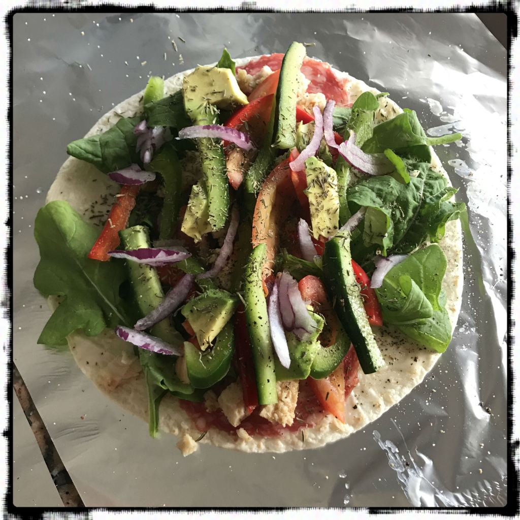 frisch gemahlenem schwarzen Pfeffer würzen, zu einem Wrap fest zusammenrollen und in