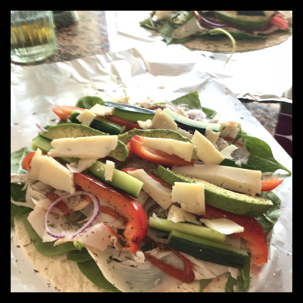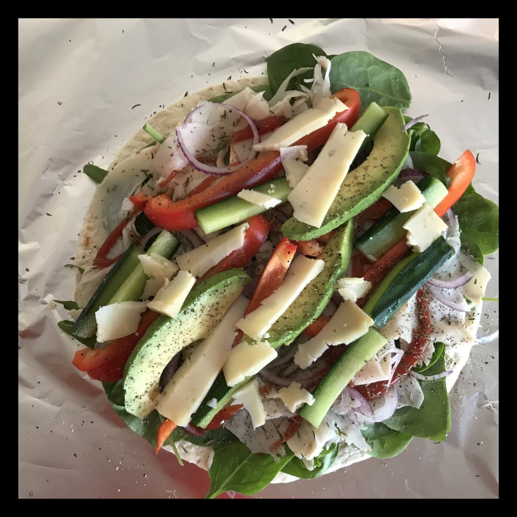 frisch gemahlenem schwarzen Pfeffer würzen, zu einem Wrap fest zusammenrollen und in