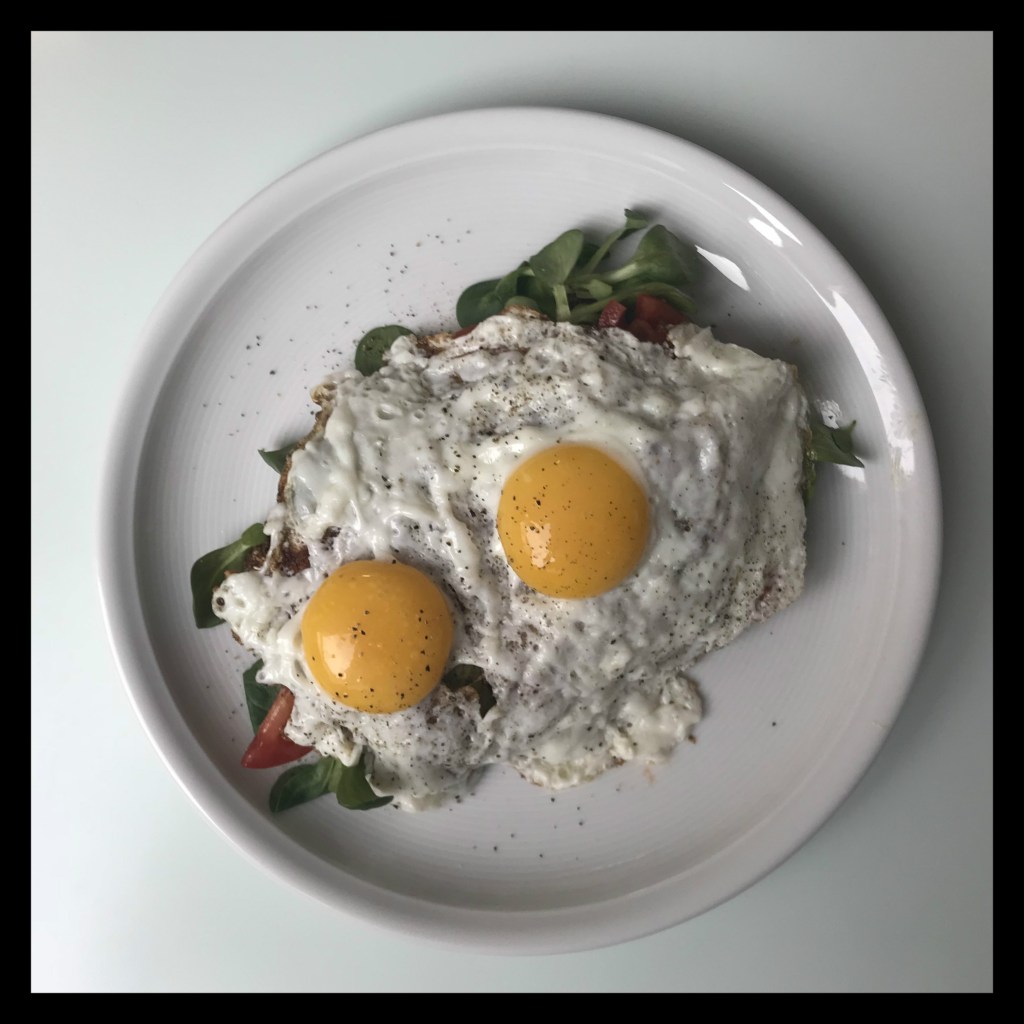 1 EL Olivenbratöl bei starker Hitze zu Spiegeleier braten, auf das Brot geben und mit