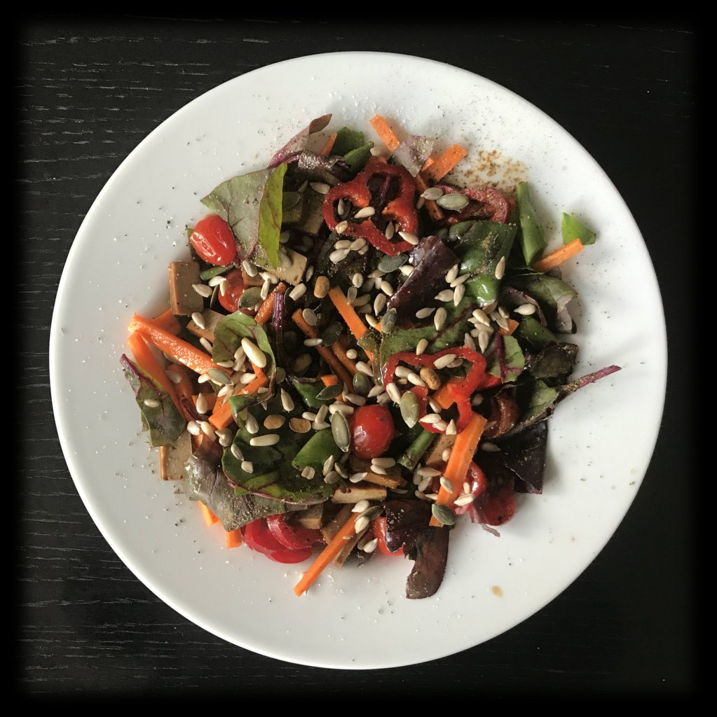 1 Handvoll rote Beete-Blätter ggf. noch leicht zerpflücken,