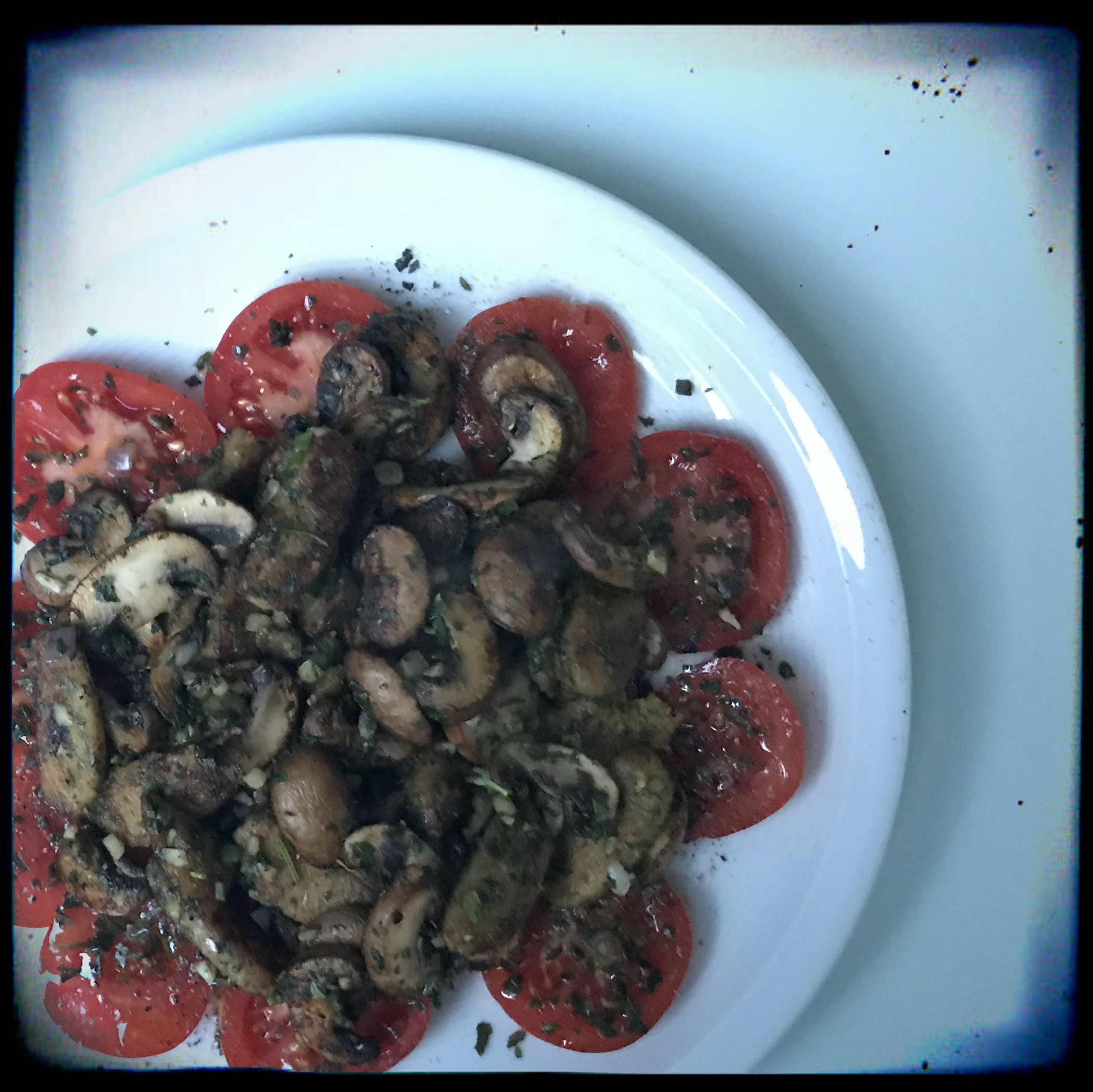 frisch gemahlenem schwarzen Pfeffer würzen und auf den Tomatensalat geben