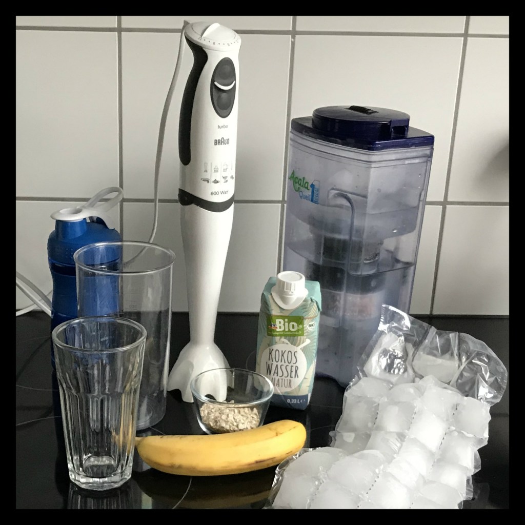 5 Eiswürfeln mit dem Mixer zu einem Shake verarbeiten