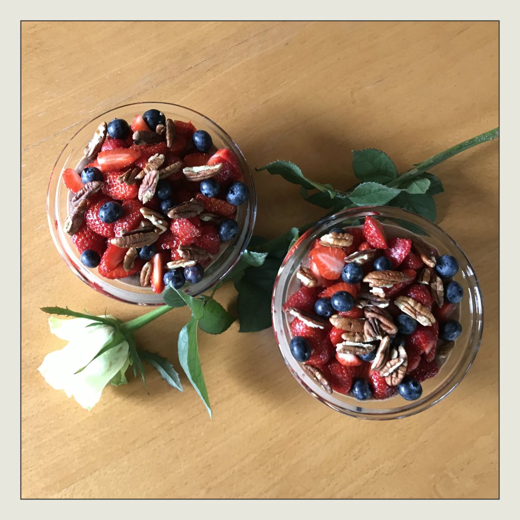 1 kleine Handvoll Blaubeeren darauf verteilen und mit