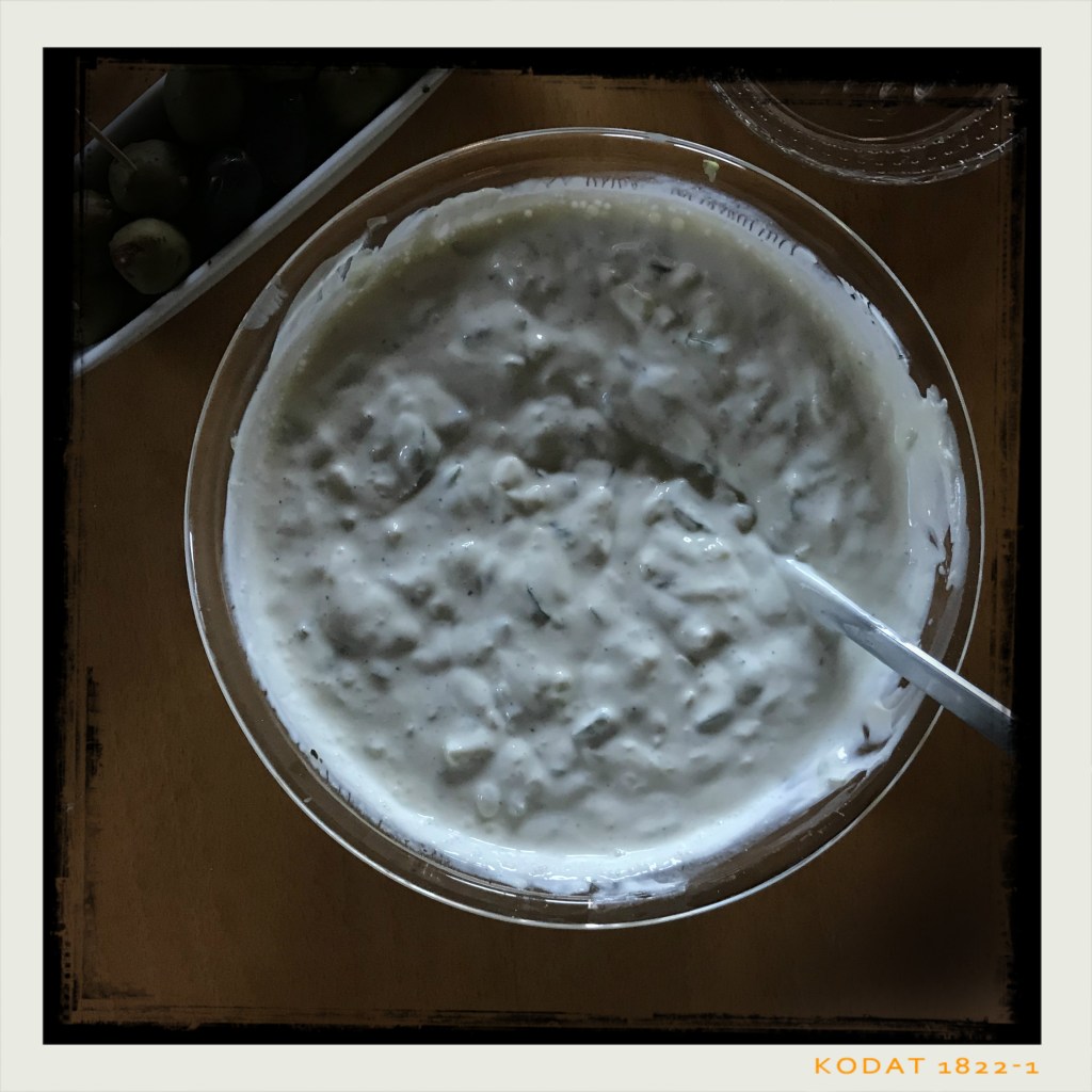 ein griechischer knoblauchhaltiger Dip zu Gegrilltem oder z. B. Röstkartoffeln (siehe 18. Juni 2016) … reicht für vier oder ggf. mehr, wenn es noch andere Dips gibt